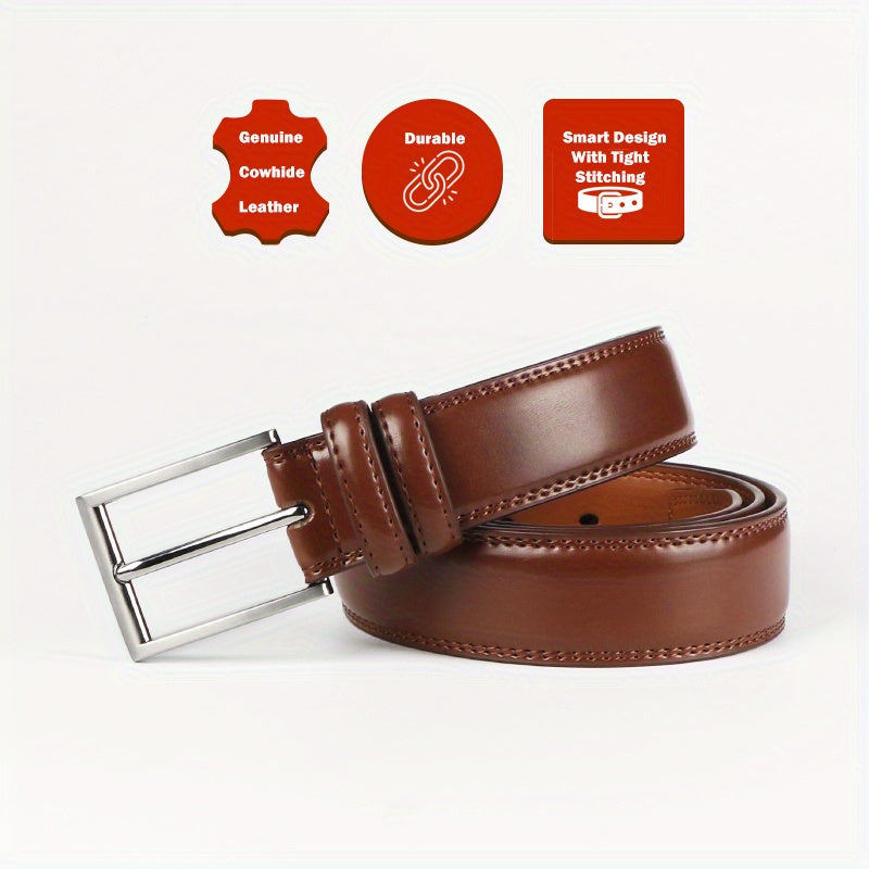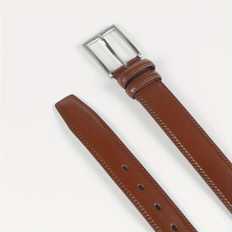 2 Pcs Men's Leather Belts Classic & Fashionable Single Prong Buckle