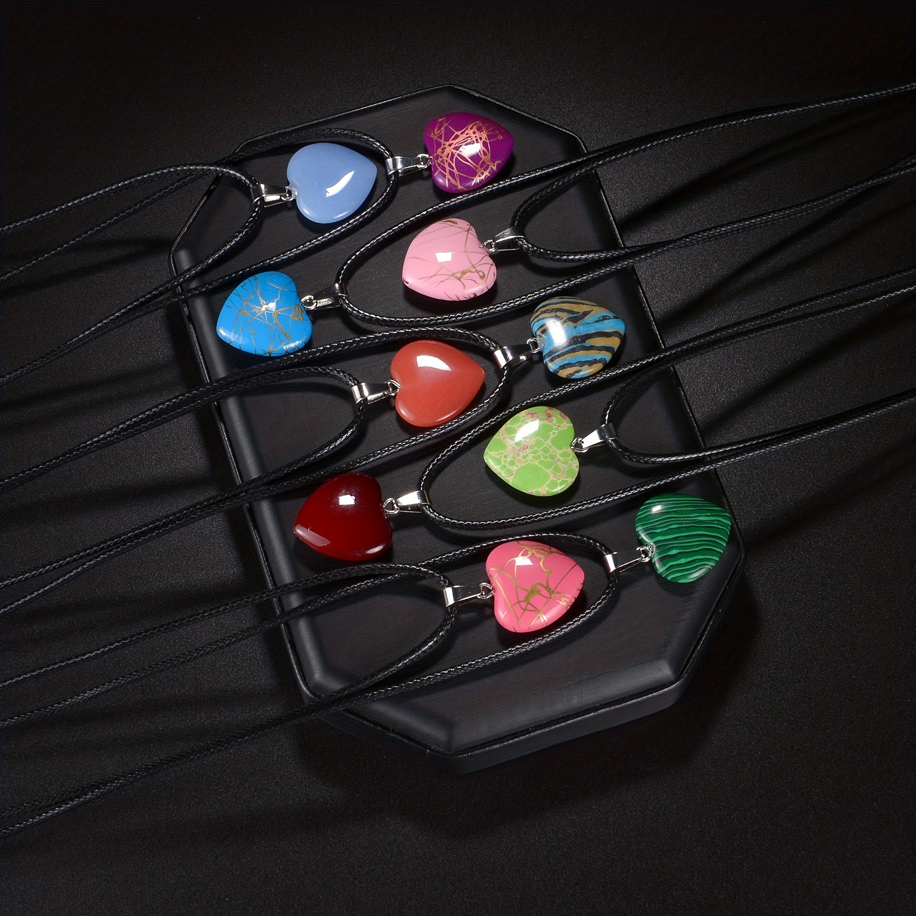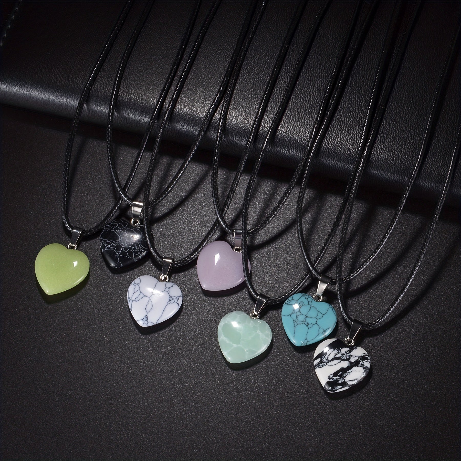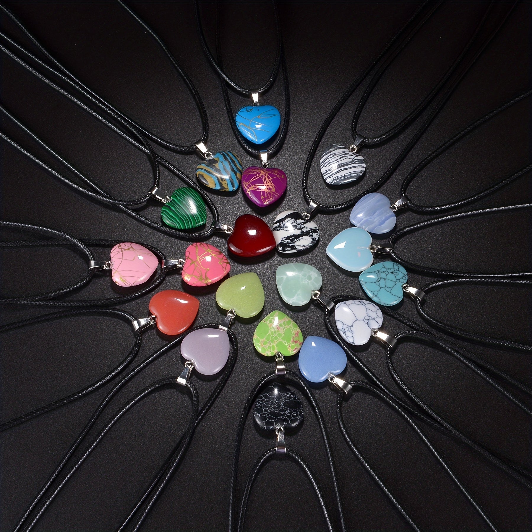 20 Colors Healing Natural Stone Love Heart Pendant Necklace Reiki Polished Miner