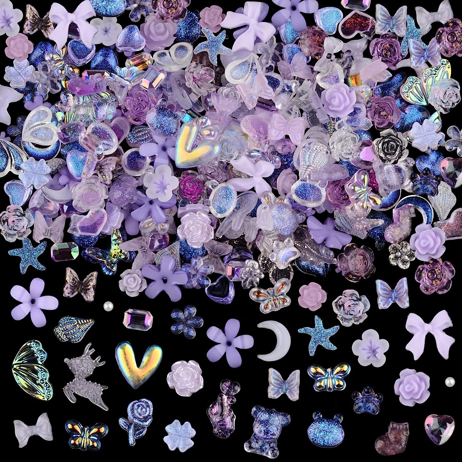 Enhance your nail art and jewelry projects with this set of 200 colorful butterfly, bear, rose, flower, and heart-shaped charms. Perfect for DIY nail art and jewelry making. Random assortment of styles.