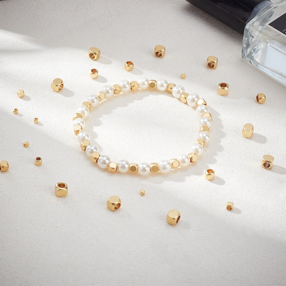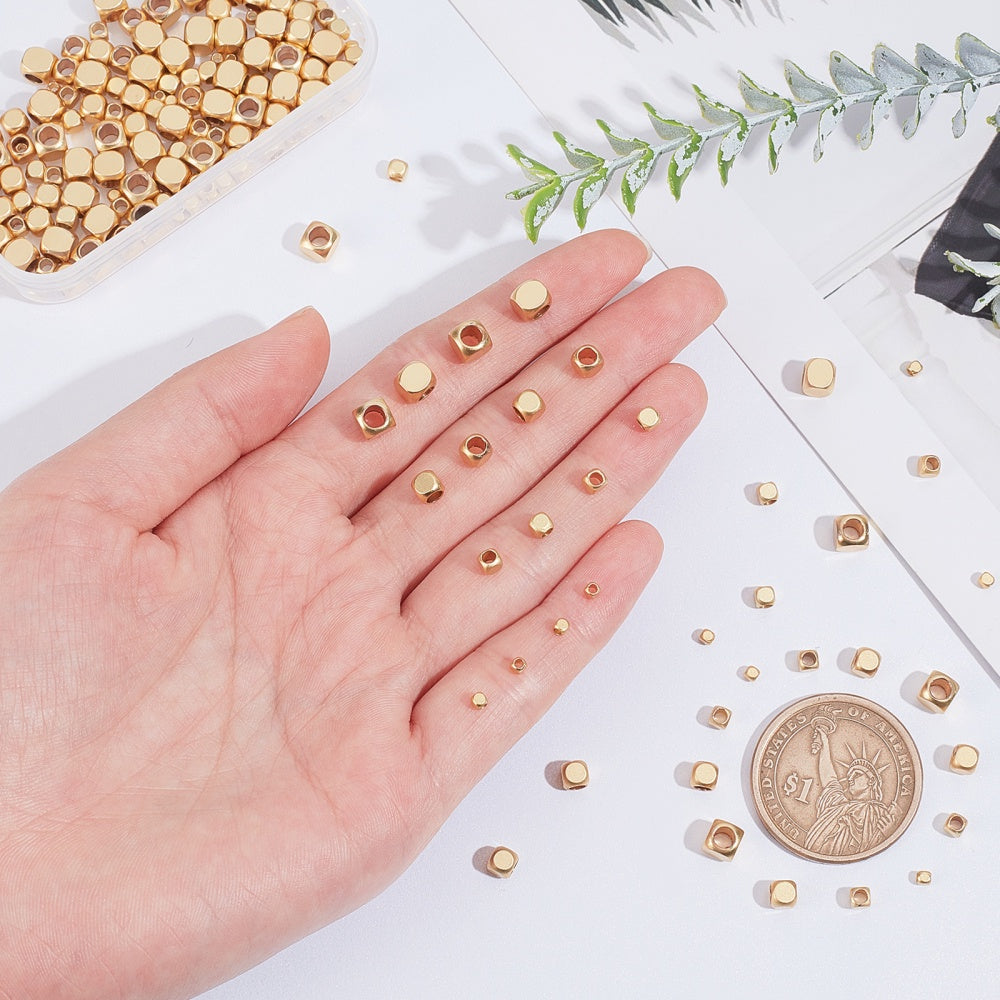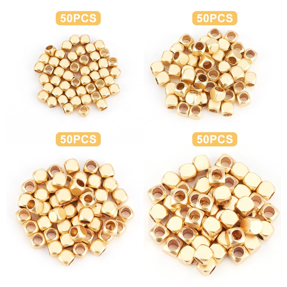 200pcs 18K Golden Cube Spacers Beads for Jewelry Making