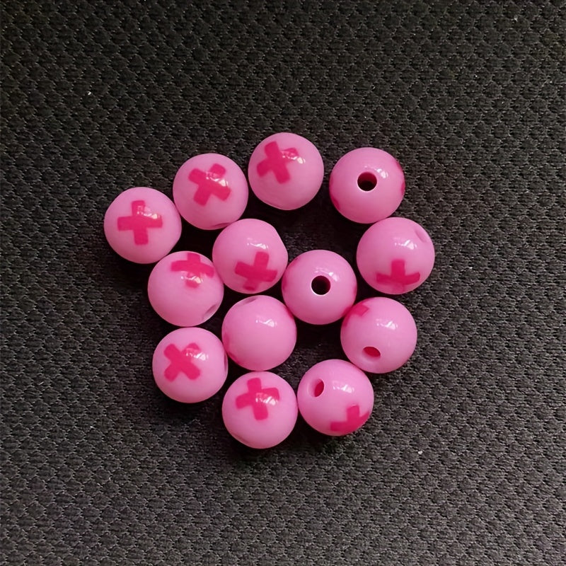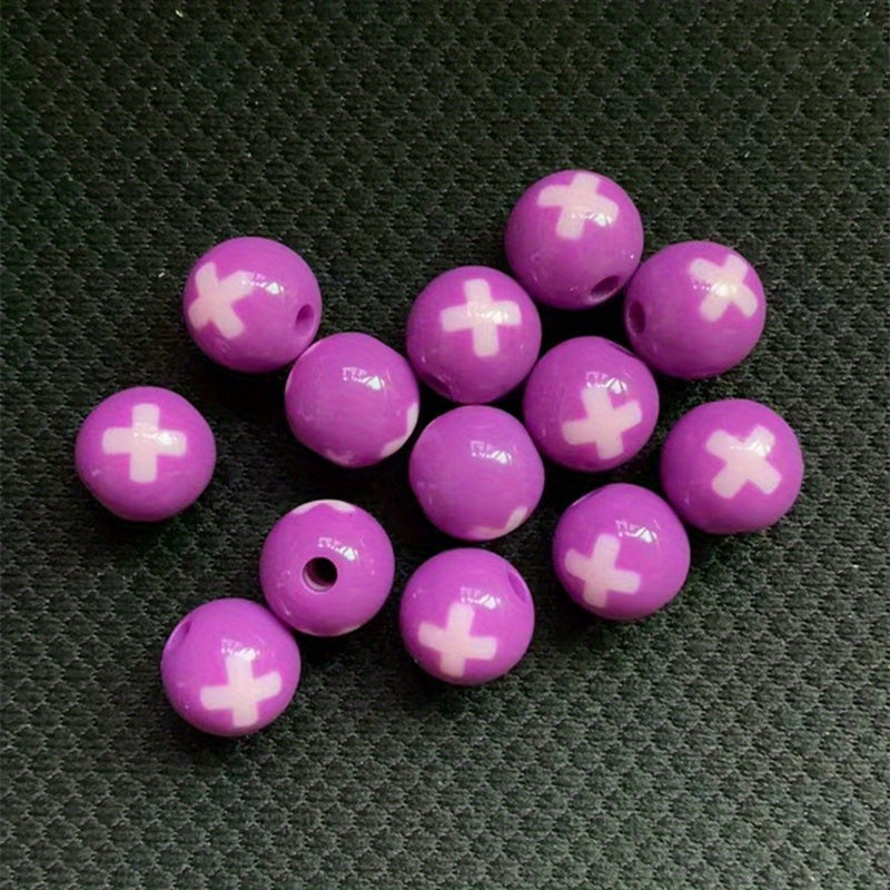 20pcs 12mm Colorful Acrylic Cross Stripe Printed Round Beads