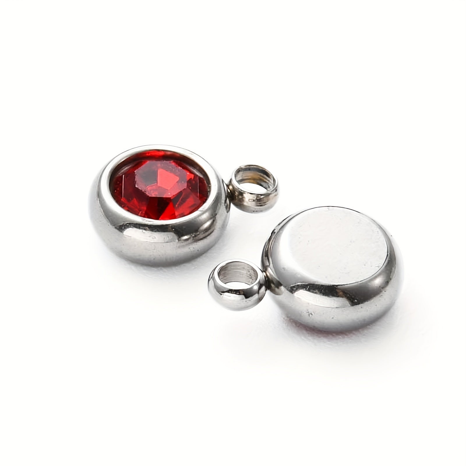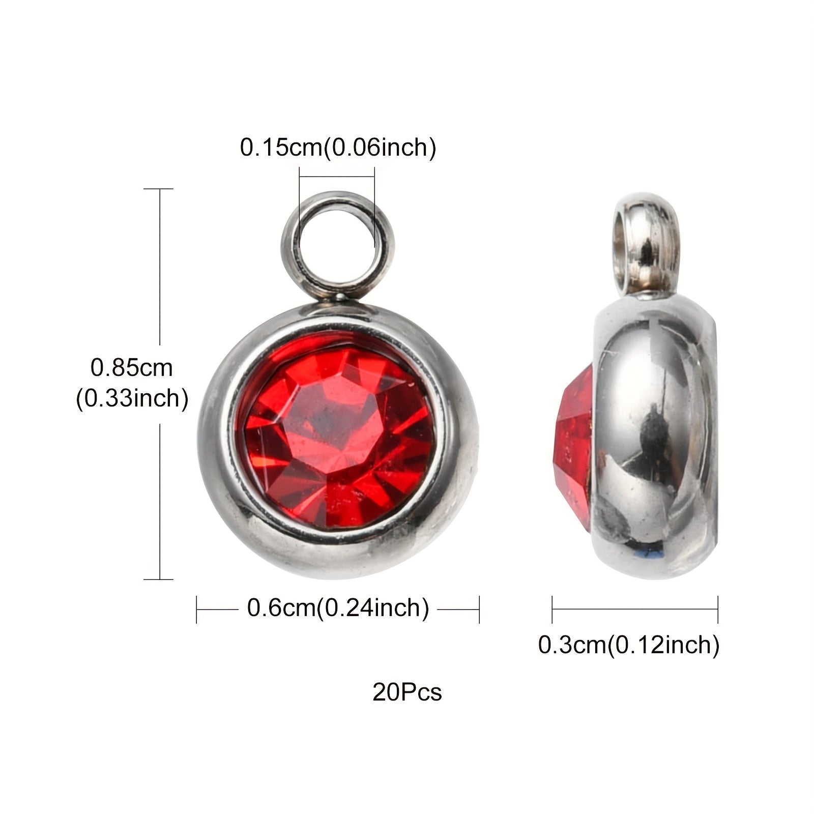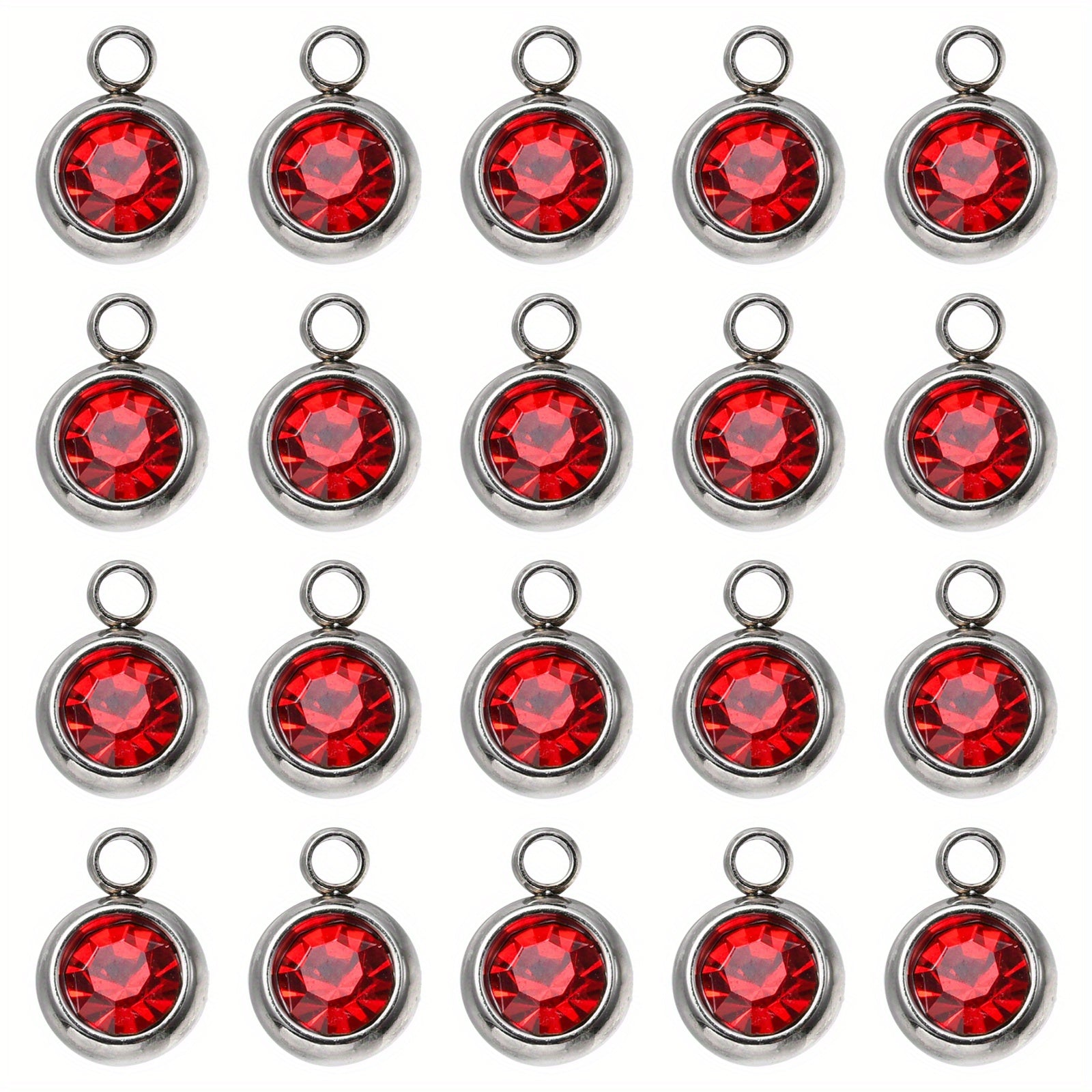Enhance your jewelry projects with these 20pcs red rhinestone adorned flat round stainless steel pendants. Perfect for bracelets, necklaces, and earrings.