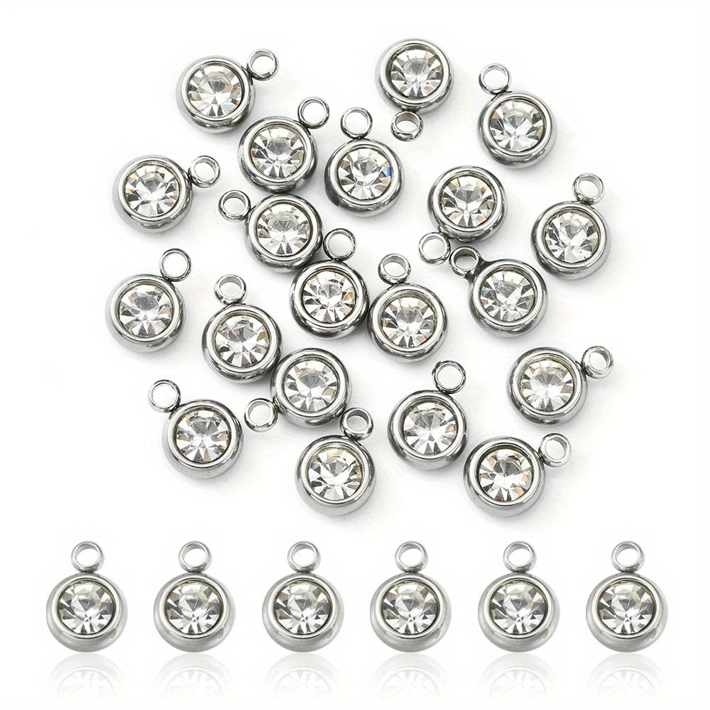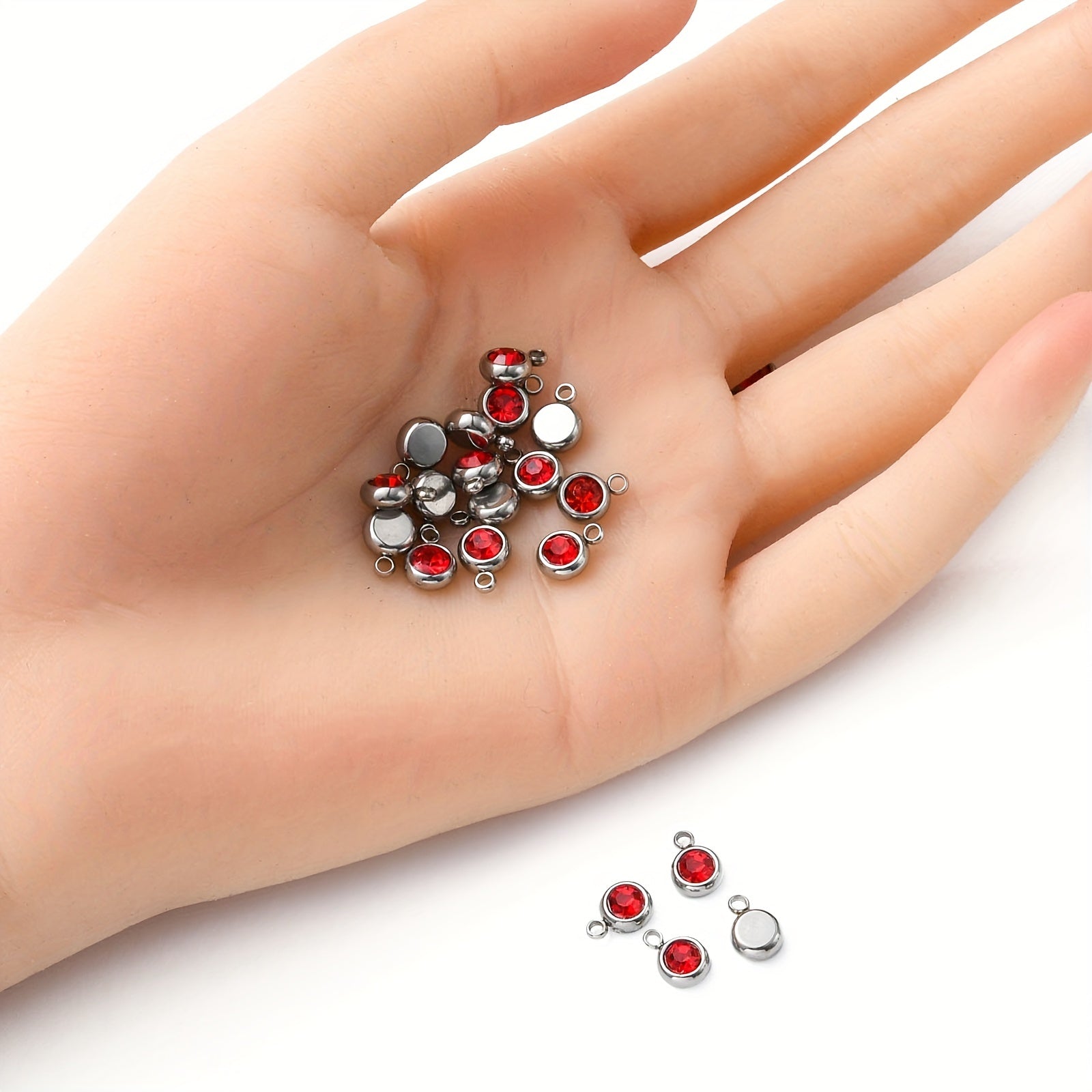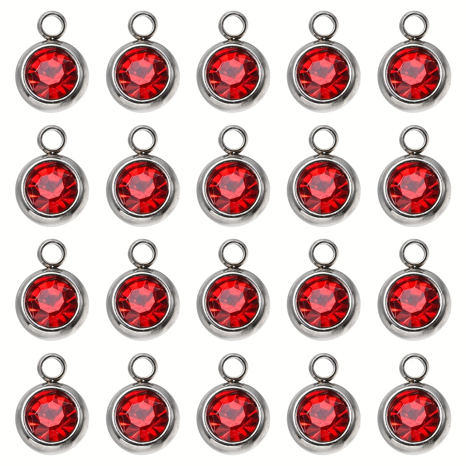 Enhance your jewelry projects with these 20pcs red rhinestone adorned flat round stainless steel pendants. Perfect for bracelets, necklaces, and earrings.
