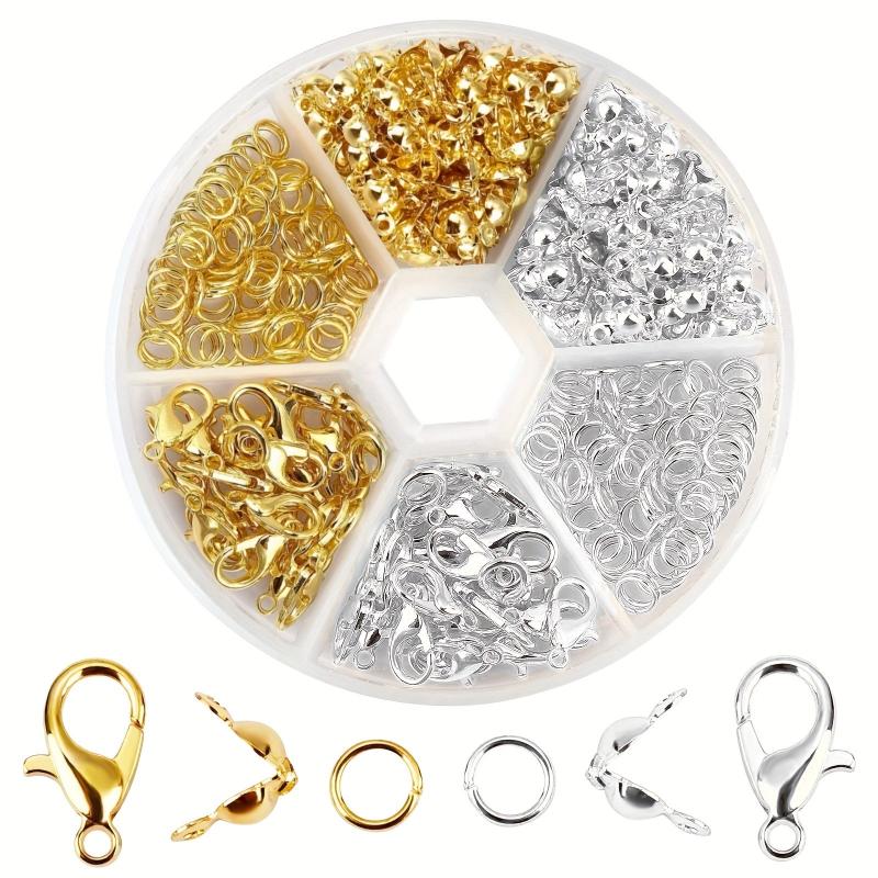 Create your own beautiful jewelry with this 241pcs DIY craft set including lobster clasps, jump rings, and zinc alloy materials. Perfect for DIY bracelets, necklaces, and more.