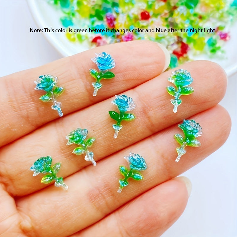 Get creative with these 25 luminous rose flower DIY jewelry accessories that can be used for nail art, jewelry making, and decorating mobile phone cases.