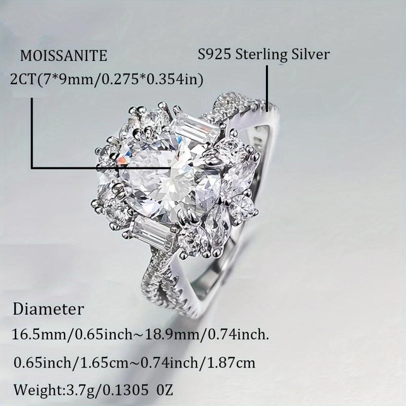 2ct Oval Moissanite Engagement Ring S925 Sterling Silver Bohemian Style