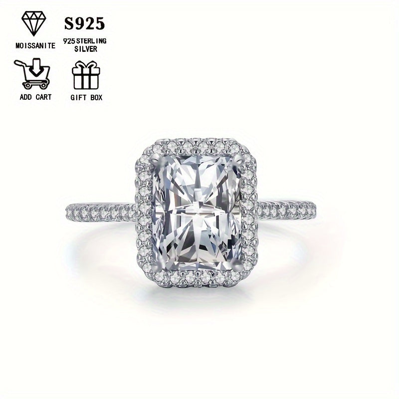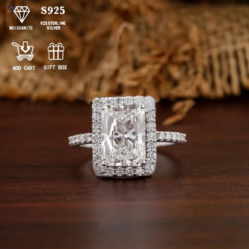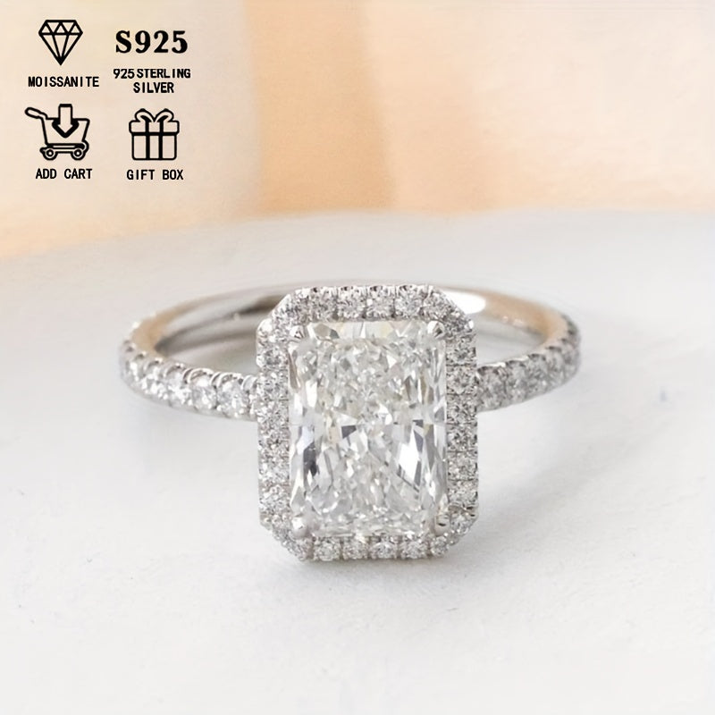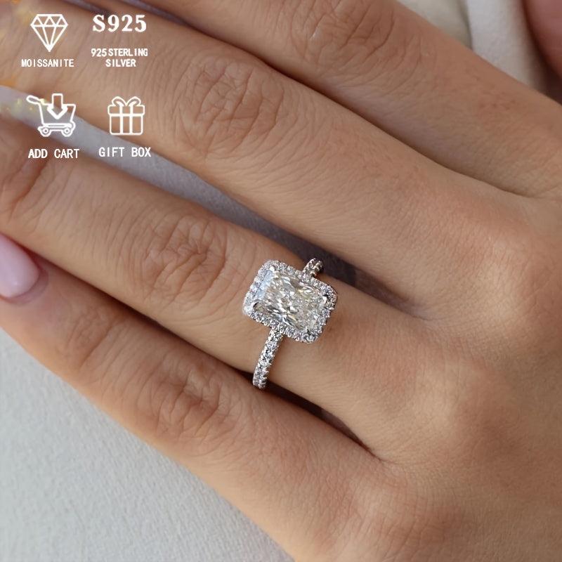 2ct Rectangular Moissanite Engagement Ring Hypoallergenic S925 Silvery Gift