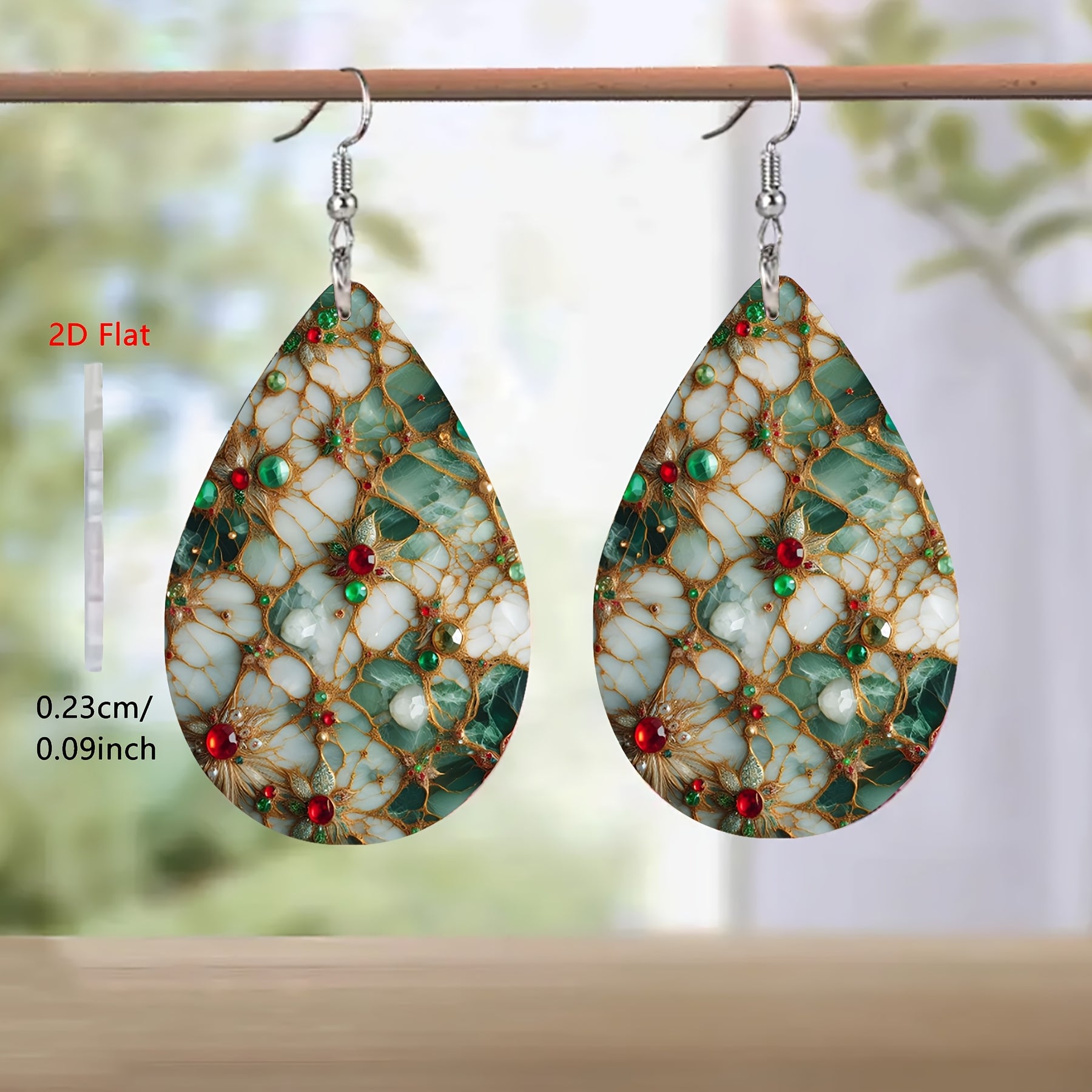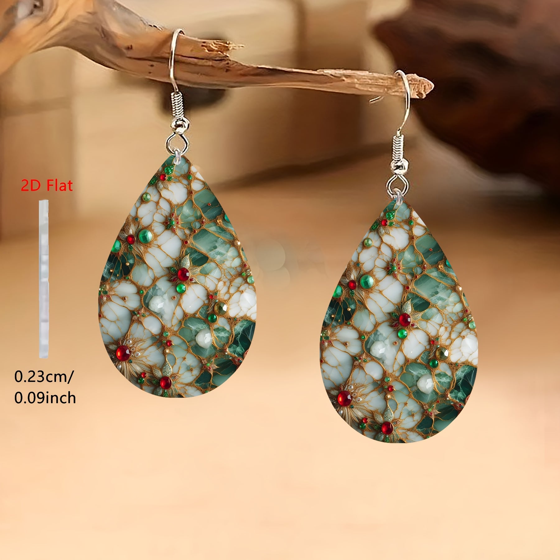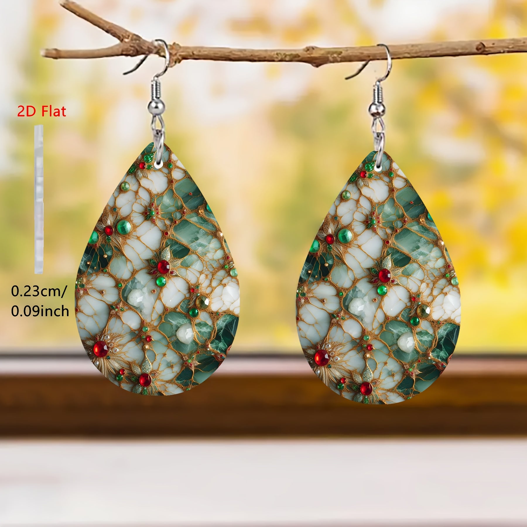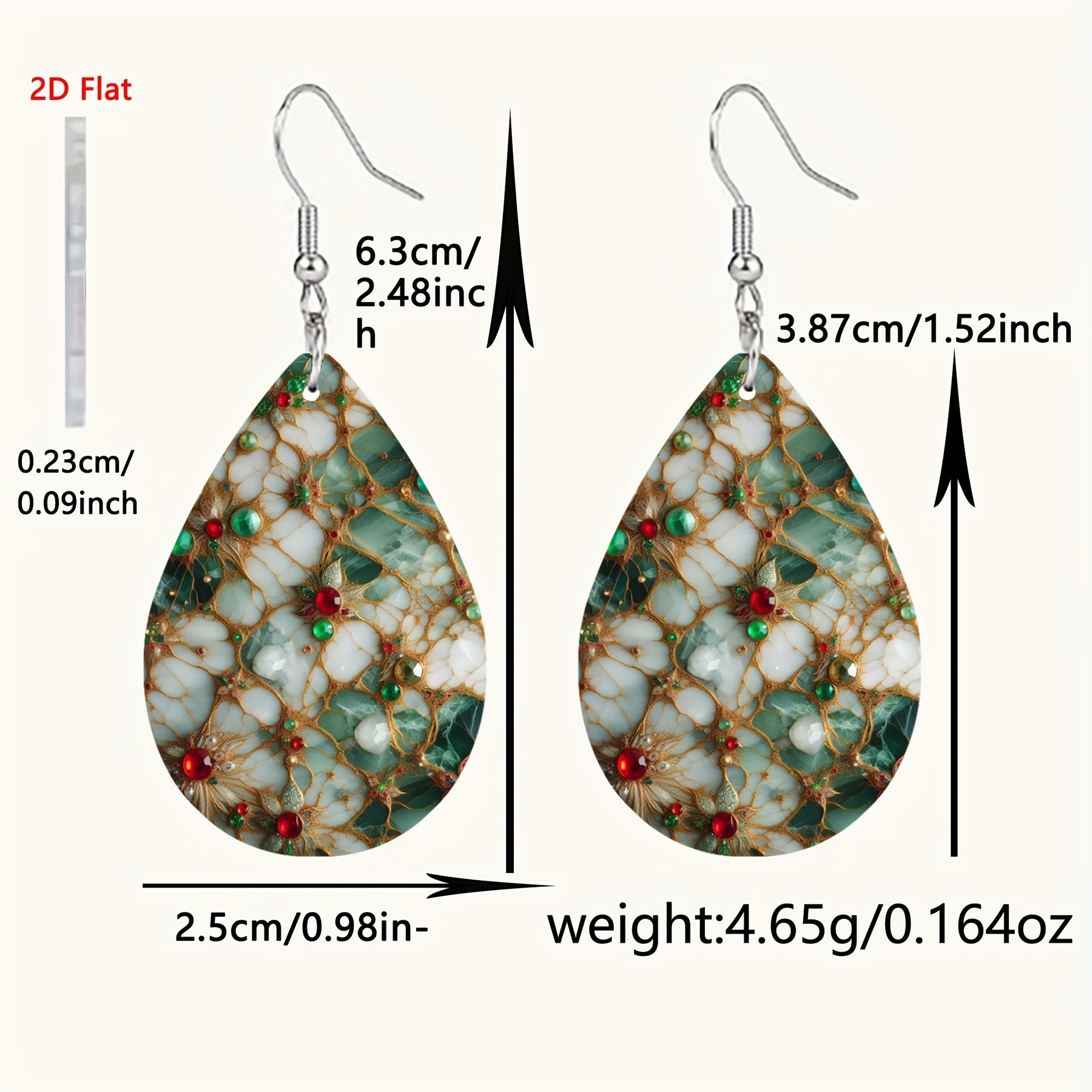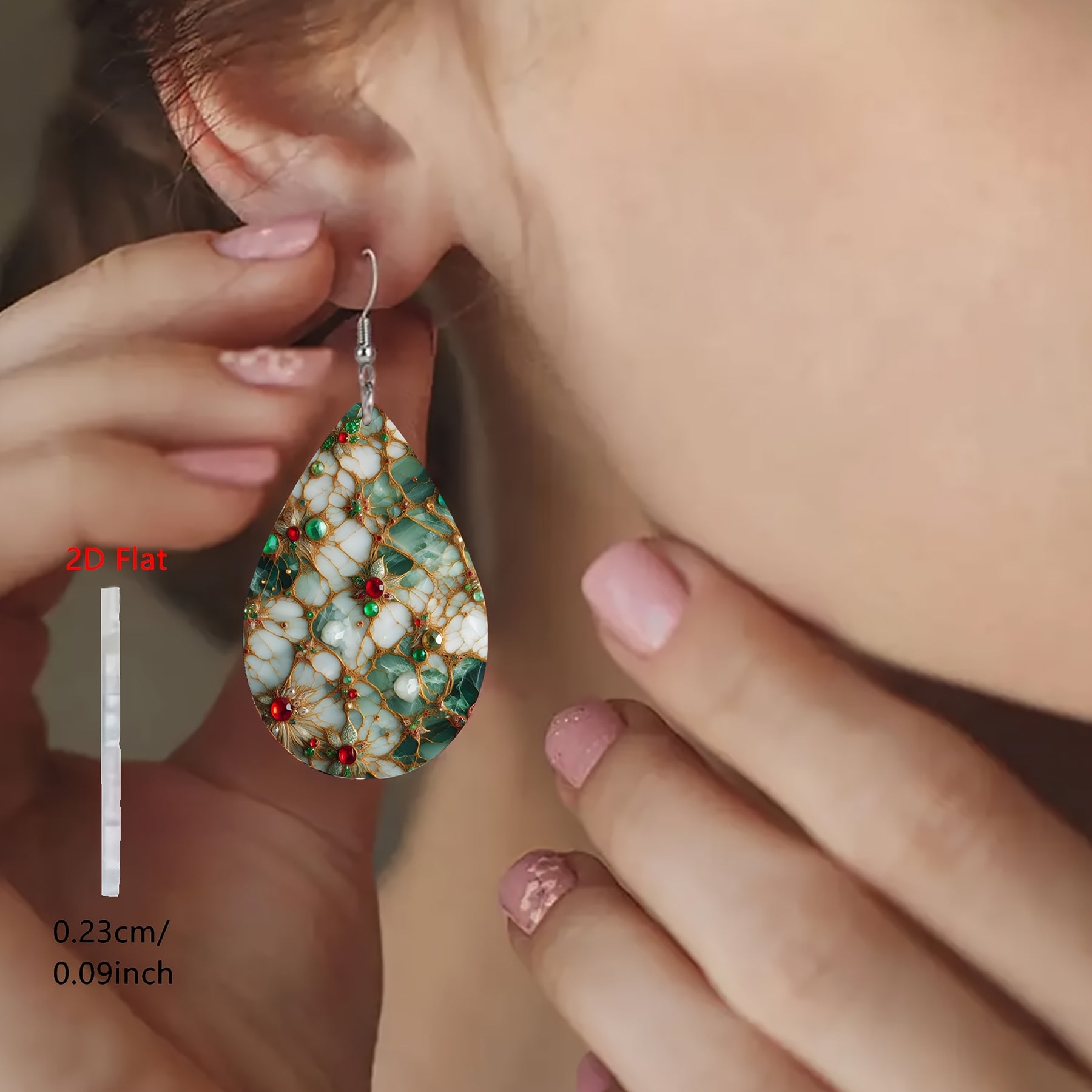 Add a pop of color to your outfit with these unique teardrop earrings featuring a green and marble pattern with red beads. Made with 316 stainless steel hooks, these earrings are perfect for daily wear, parties, and more.