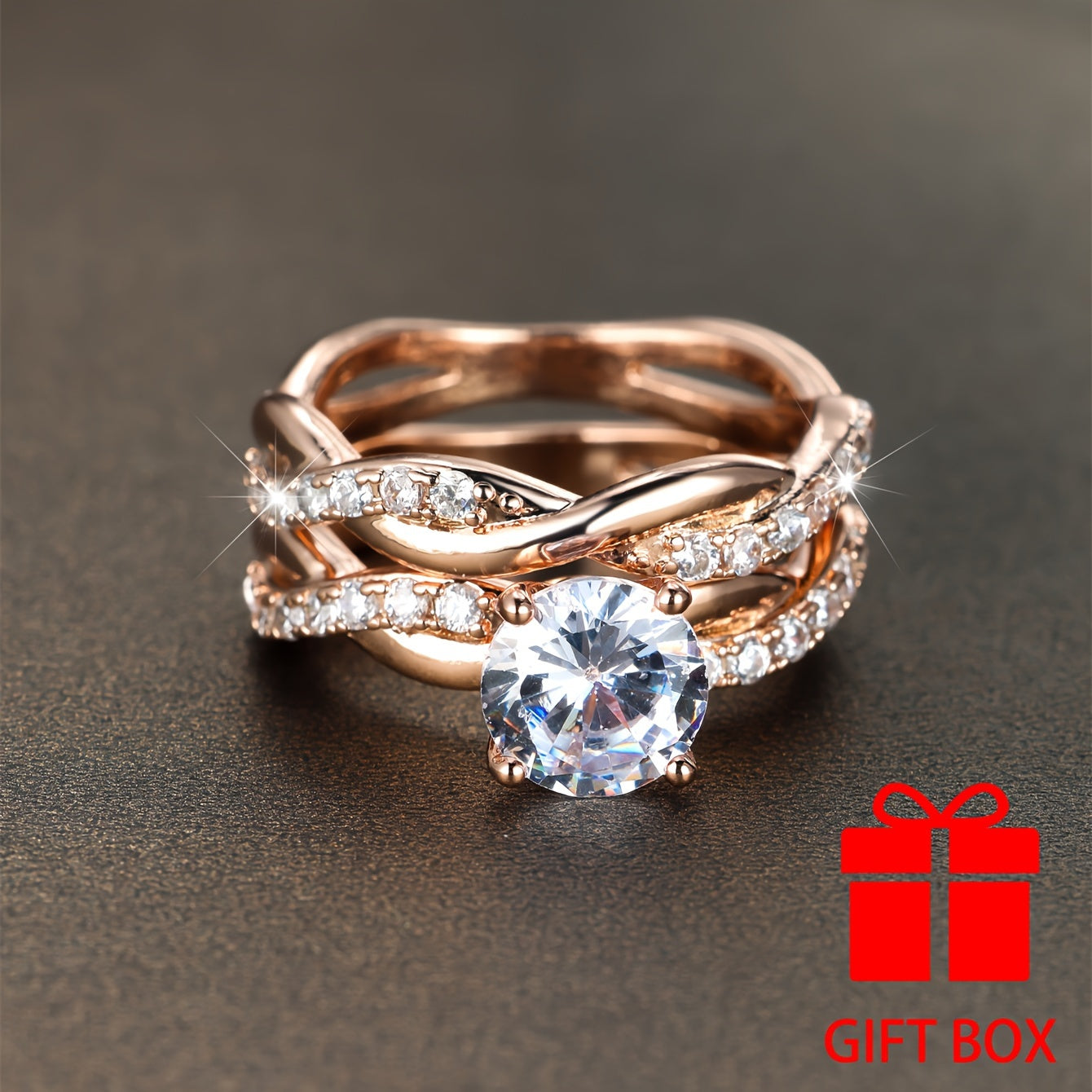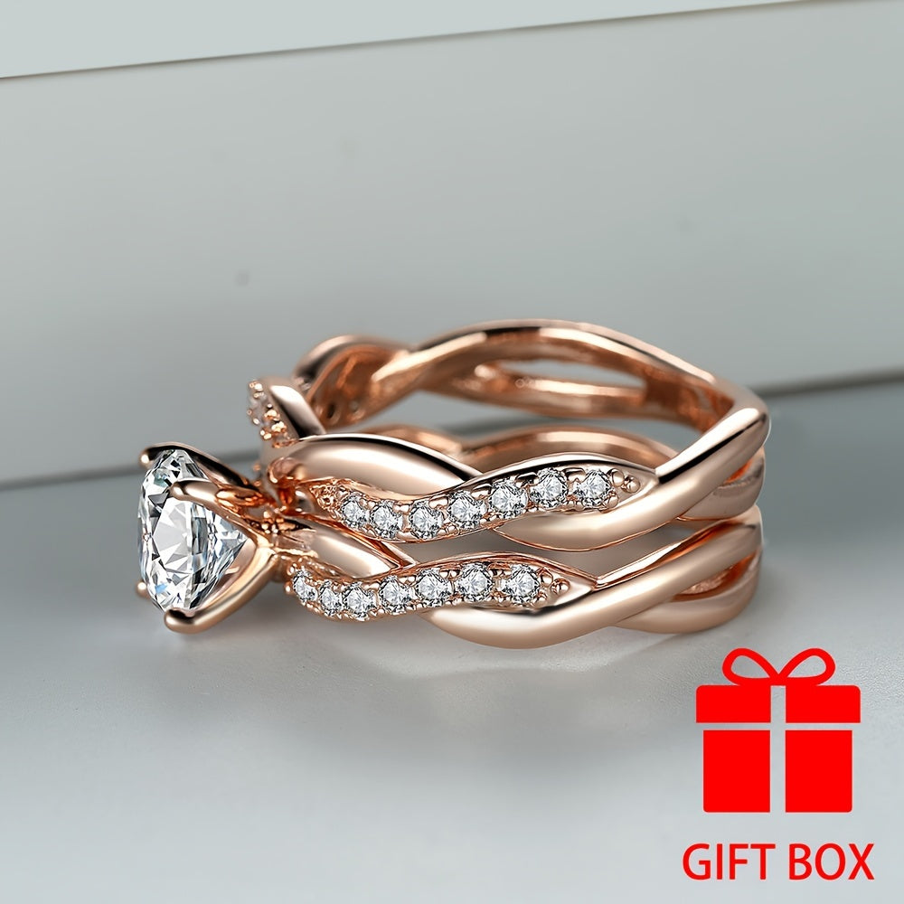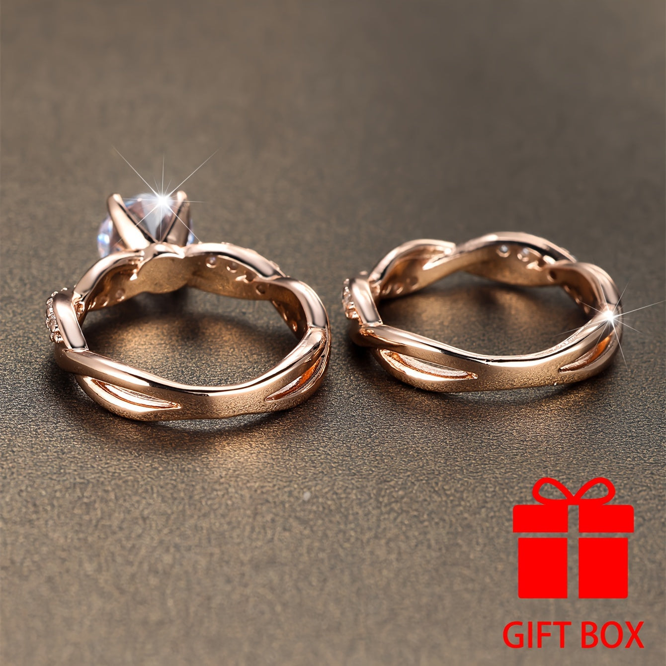 2Pc Round Cut Zirconia Twist Rose Gold Rings Set Wedding