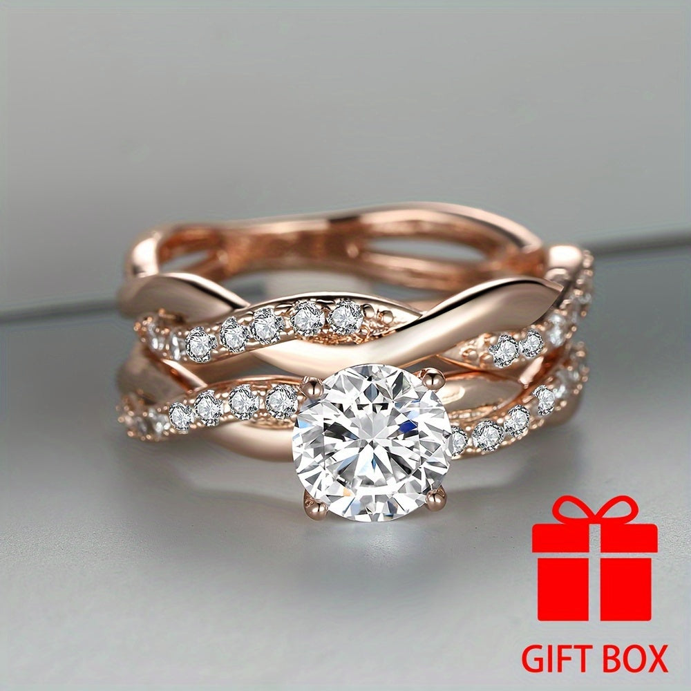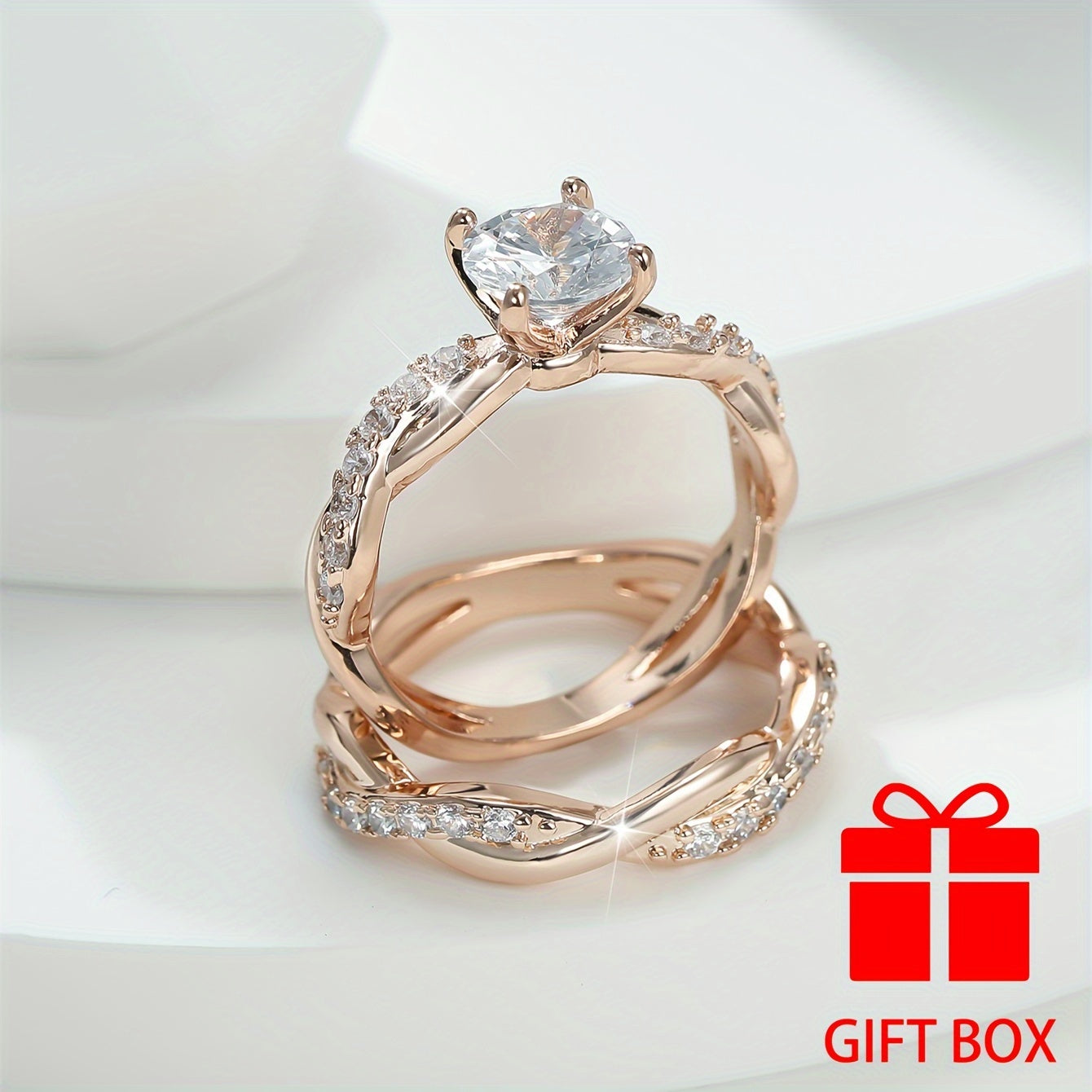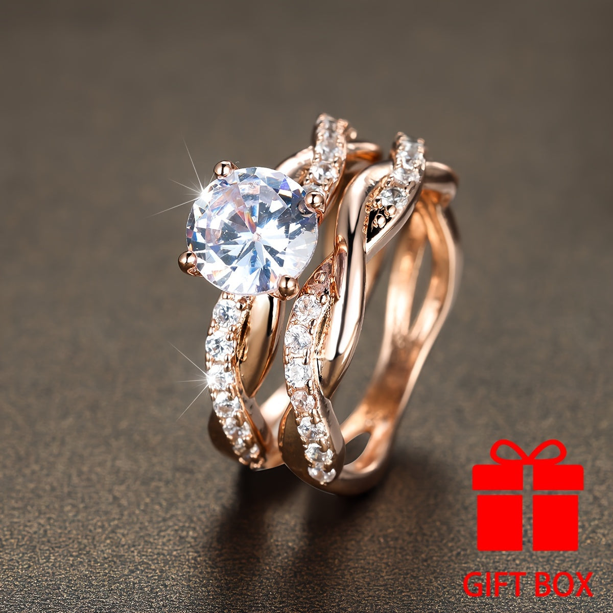 2Pc Round Cut Zirconia Twist Rose Gold Rings Set Wedding