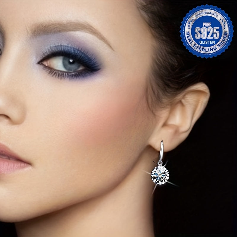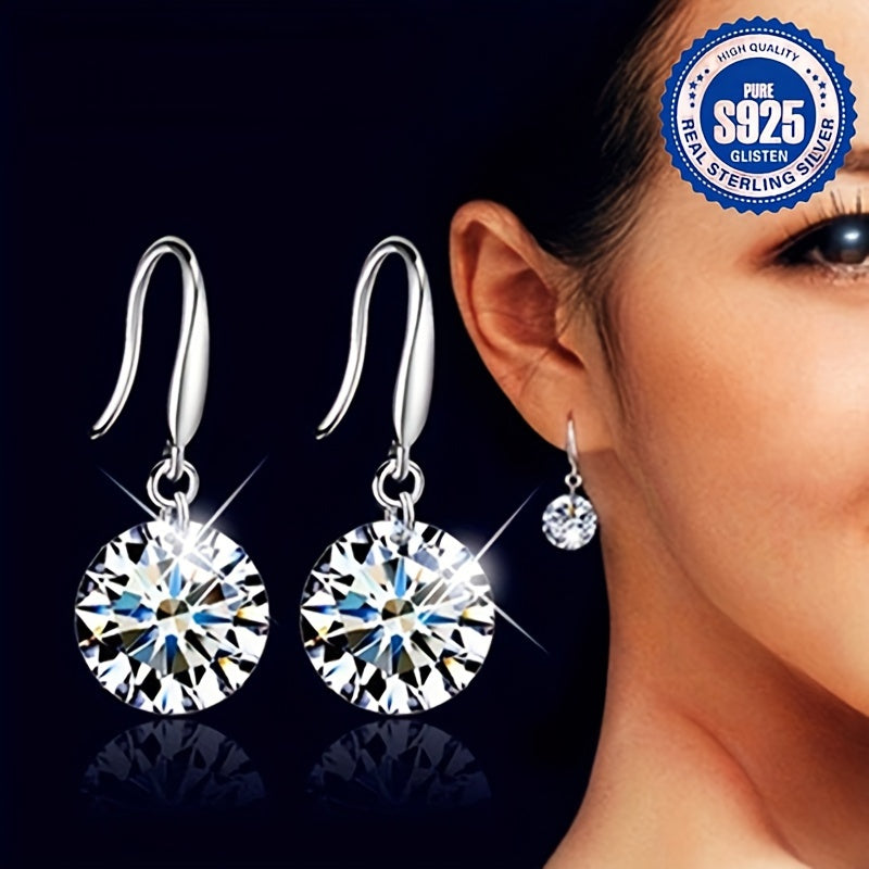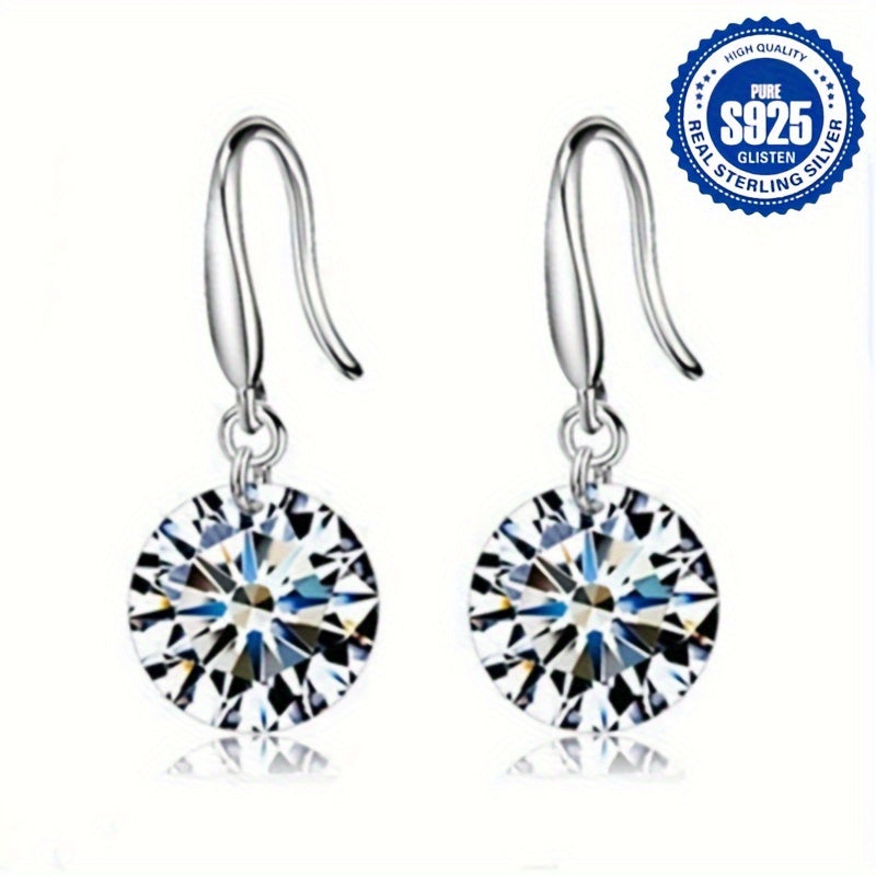 2pcs 925 Silver Ear Hooks Zirconia Drop Earrings