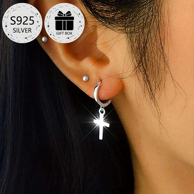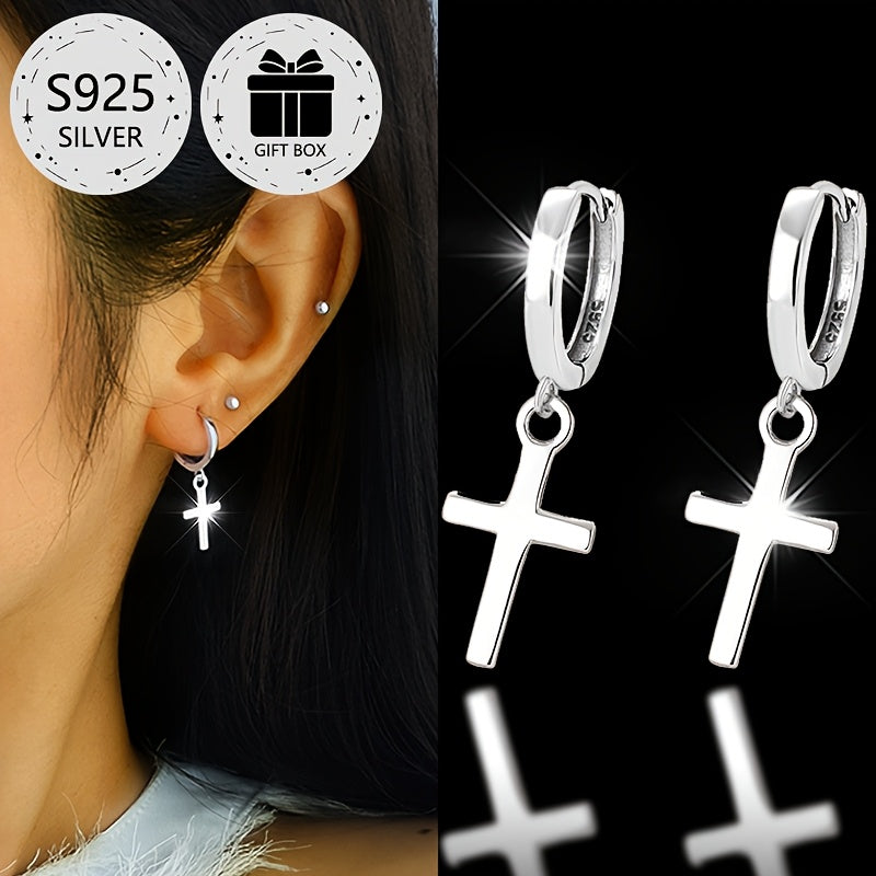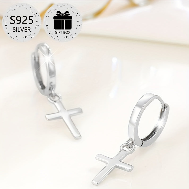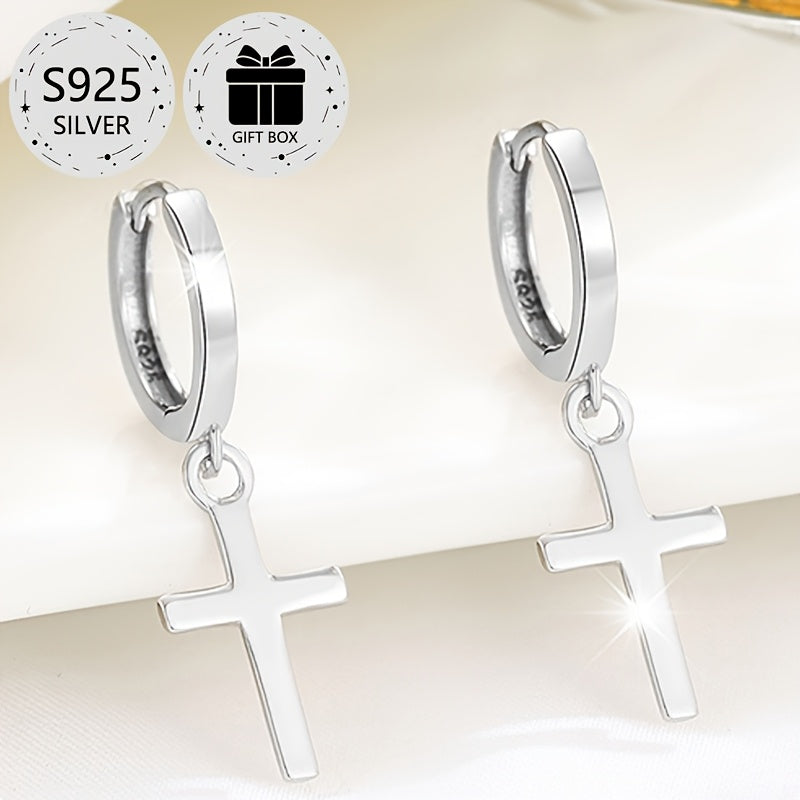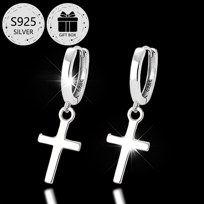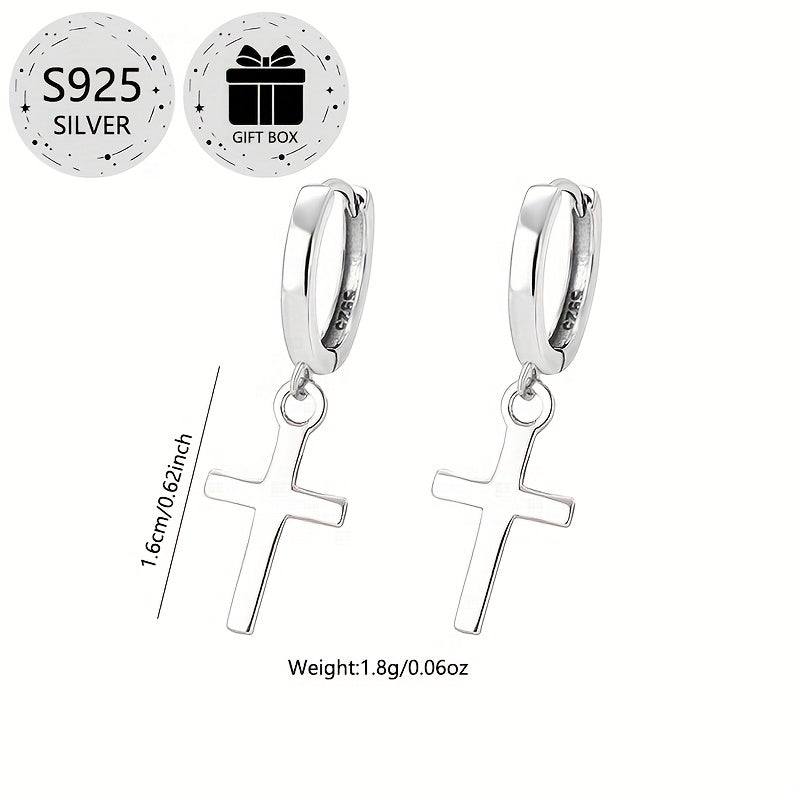These classic cross earrings are made of 925 silver with a total weight of 1.8g. They are perfect for sending as a gift to good friends for a party, symbolizing nobility and elegance.