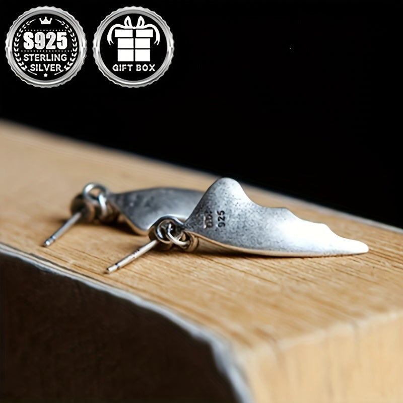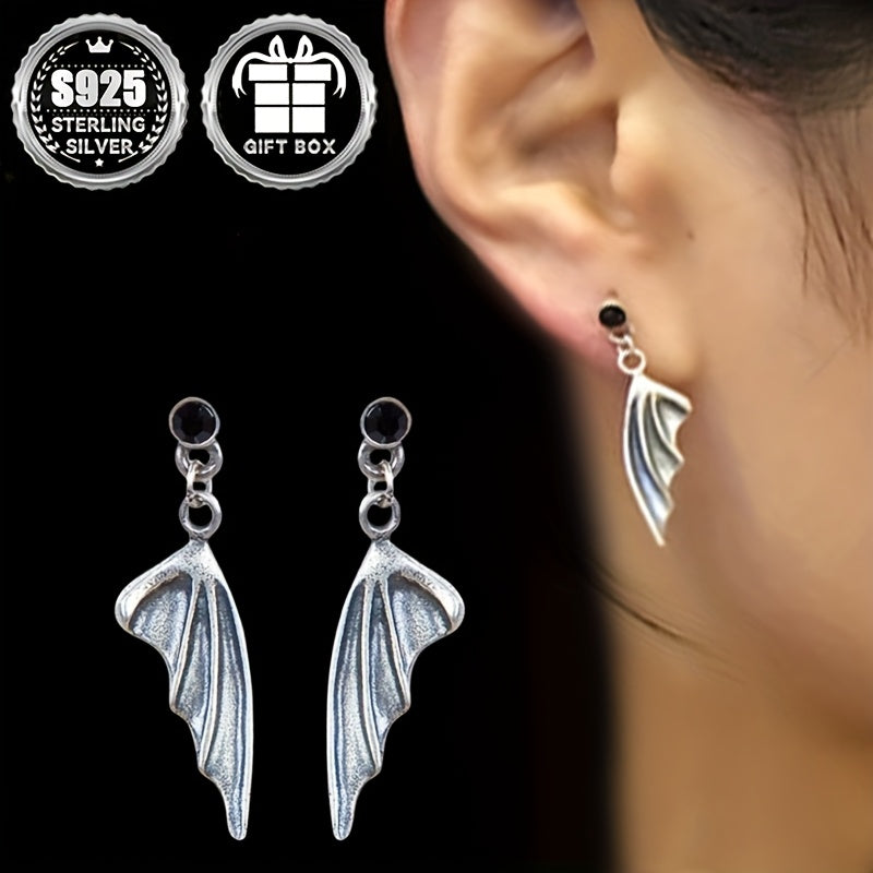 2pcs Devil Wings Dangle Earrings Retro Gothic Style 925 Pure Silvery