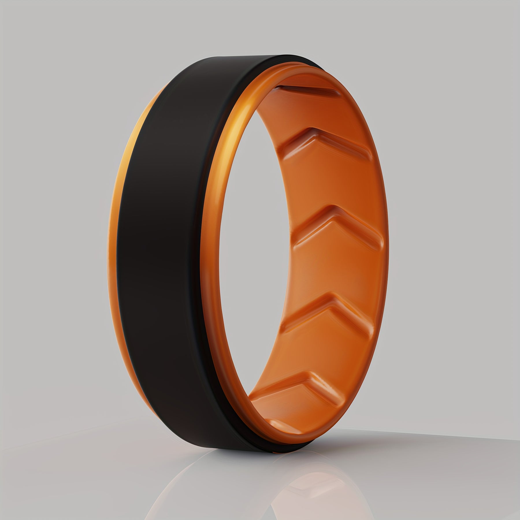These 2pcs Men's Silicone Rings in dual tone olive green are perfect for outdoor activities. Made with durable material, they feature an air release groove for added comfort. Great for sports, weddings, and everyday wear.