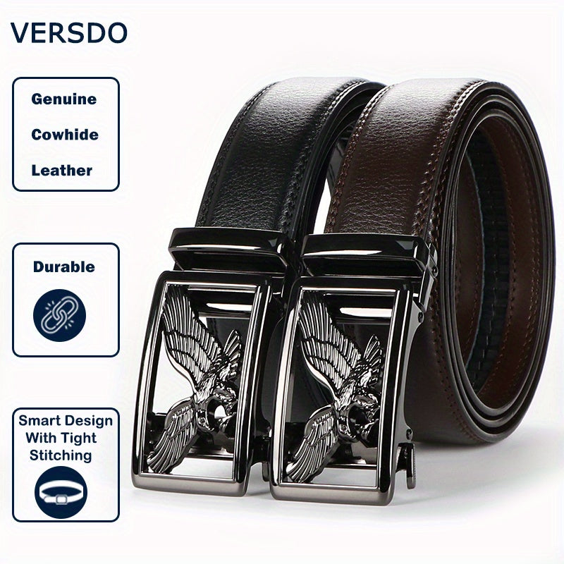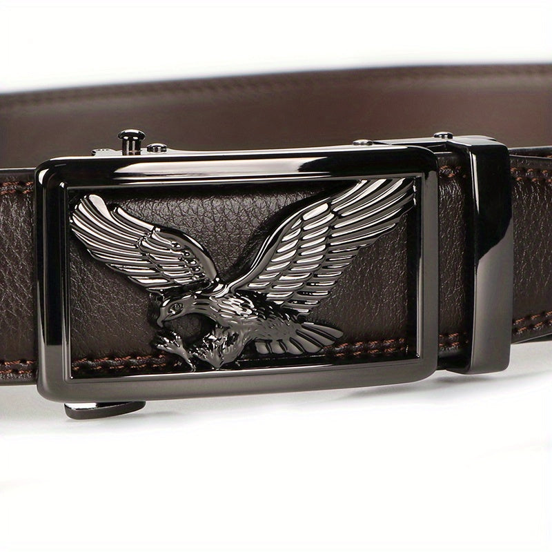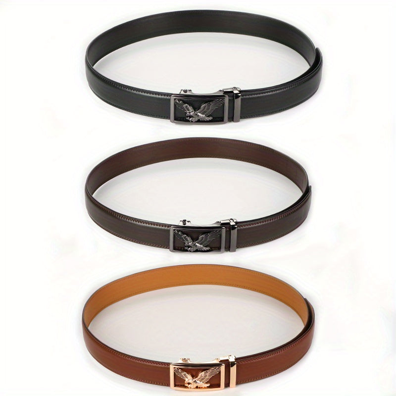 Upgrade your style with these 2pcs men's leather belts featuring automatic alloy buckles. Suitable for business and casual wear, these belts are made of durable brown leather, perfect for everyday use.