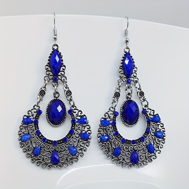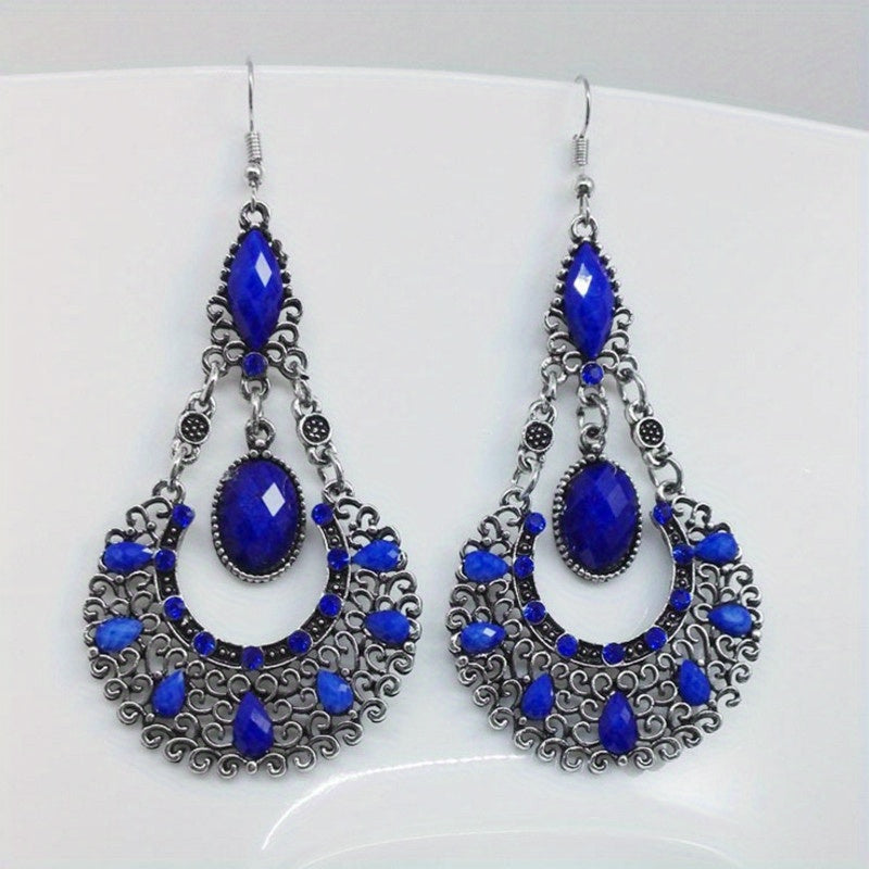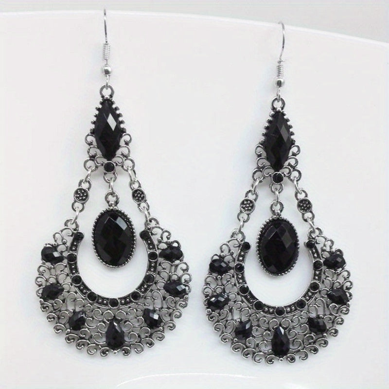 These stylish earrings feature a water drop tassel design with hollow carved details. Available in multiple colors, suitable for both men and women.