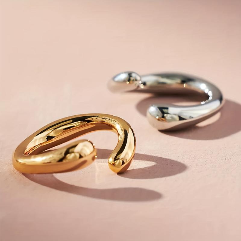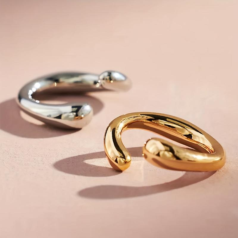 Enhance your style with this stunning set of 2 ear cuffs earrings in a mix of golden and silvery tones. Perfect for adding a touch of glamour to any outfit.
