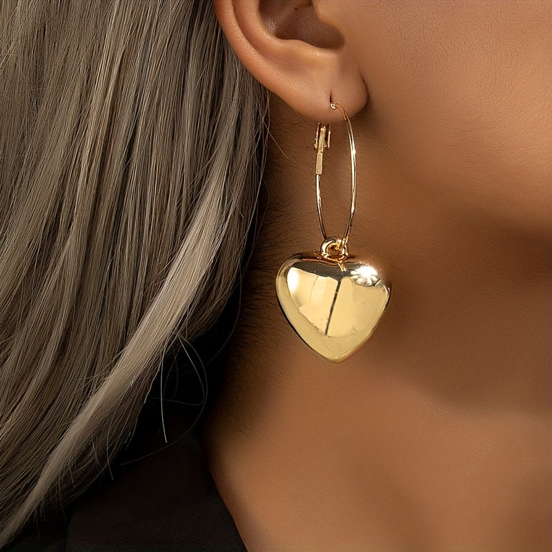 These sweet and stylish peach heart earrings are a must-have accessory for any fashion-forward woman. The large C-shaped design adds a unique touch to your outfit.