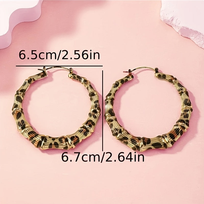 These stylish hoop earrings are made of iron and feature a retro bamboo joint circle design. Perfect for daily wear, parties, and performances, these earrings add a touch of vintage charm to any outfit.