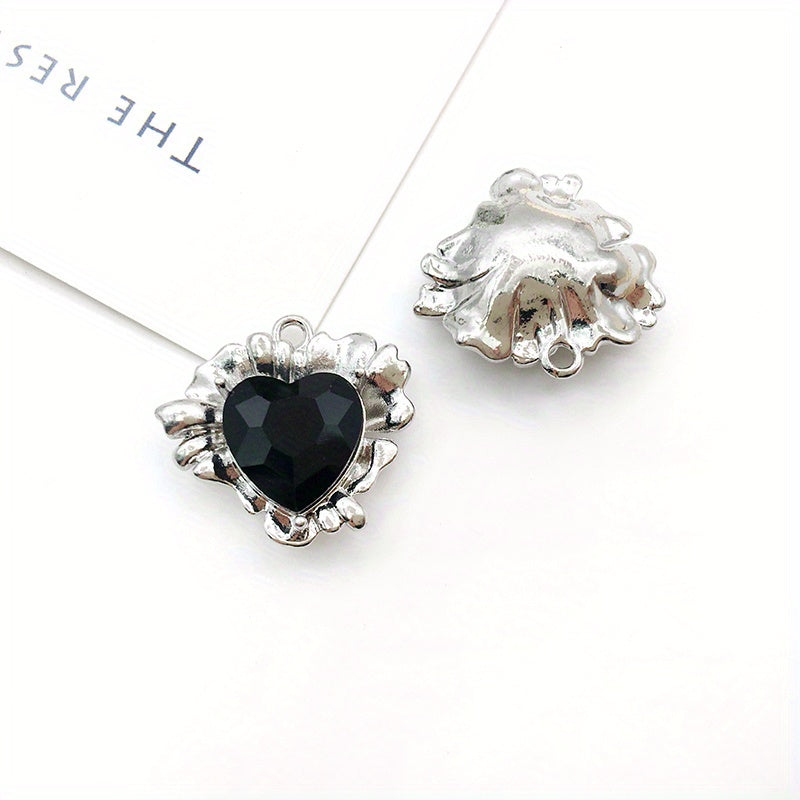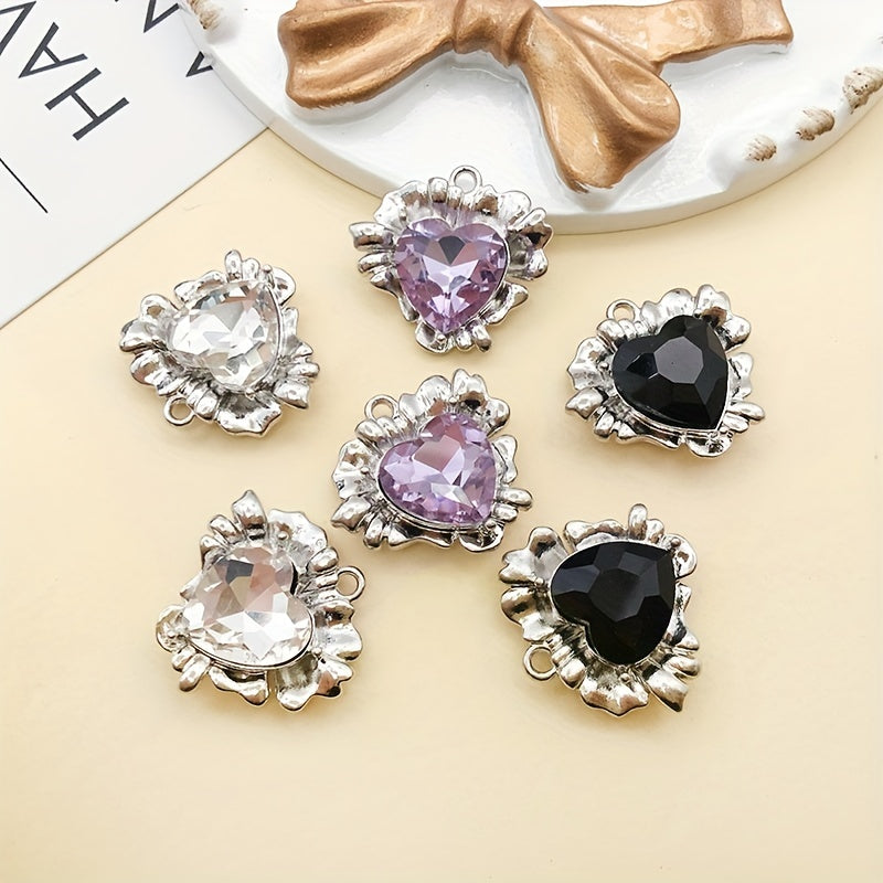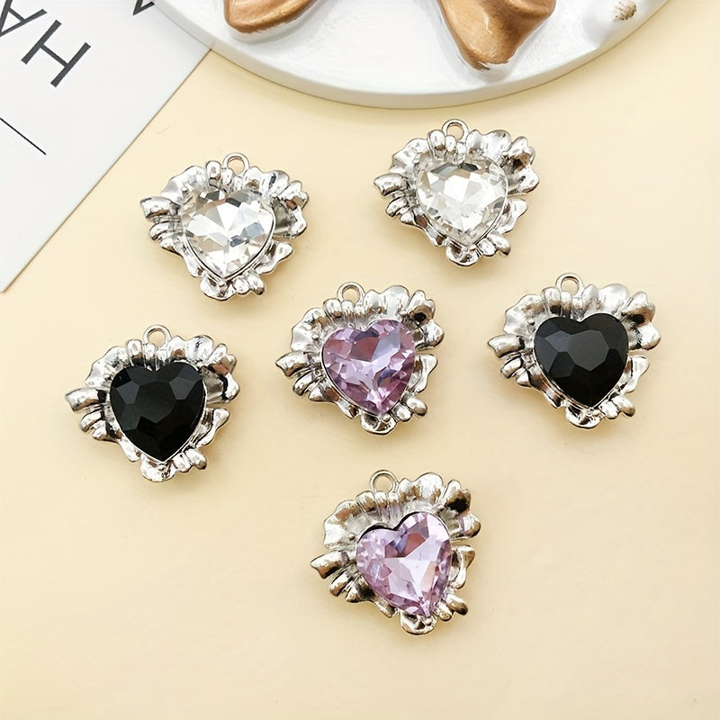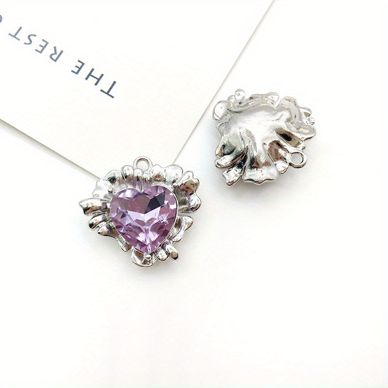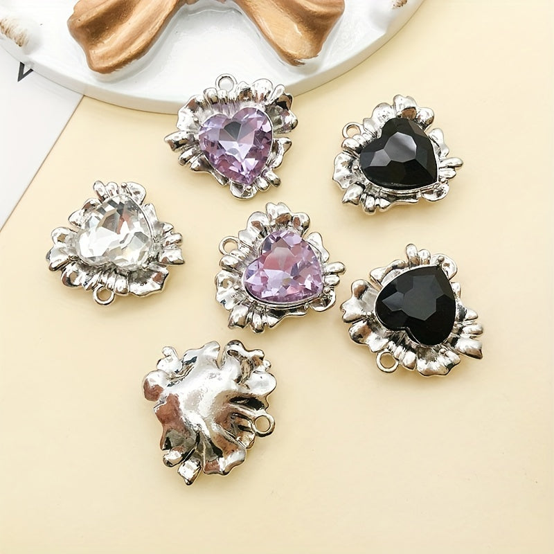 2Pcs Rhinestone Heart Charms Pendant for Jewelry Making