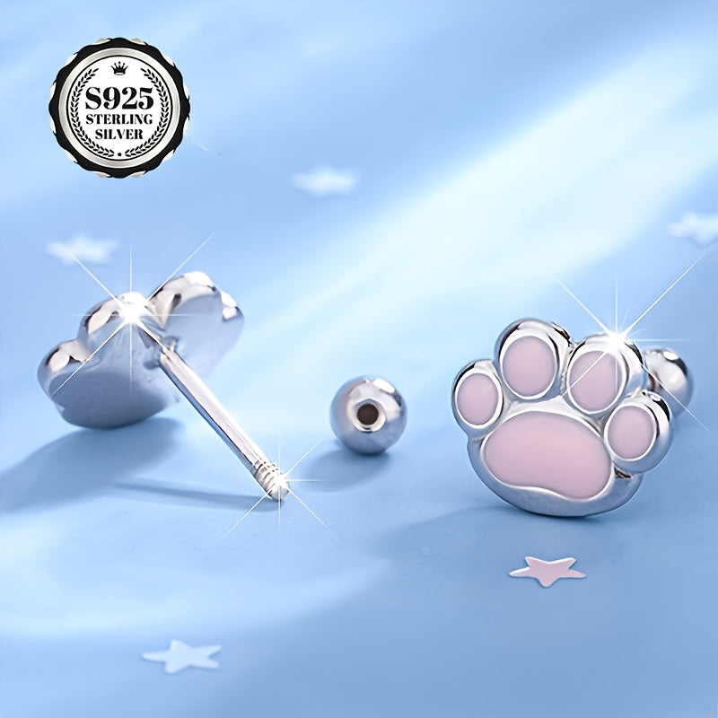 Get this set of 2 sweet and sexy S925 pure silvery pink glue cat paw earrings. Suitable for daily wear and easy to match with any outfit.