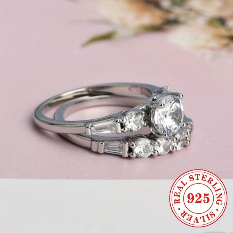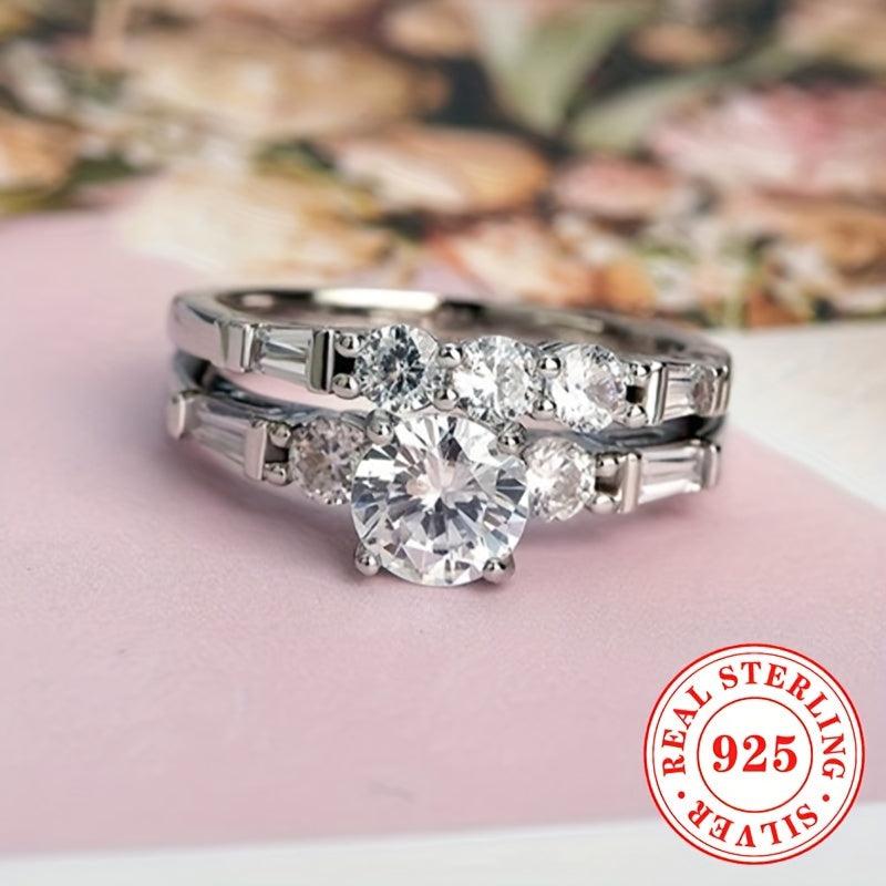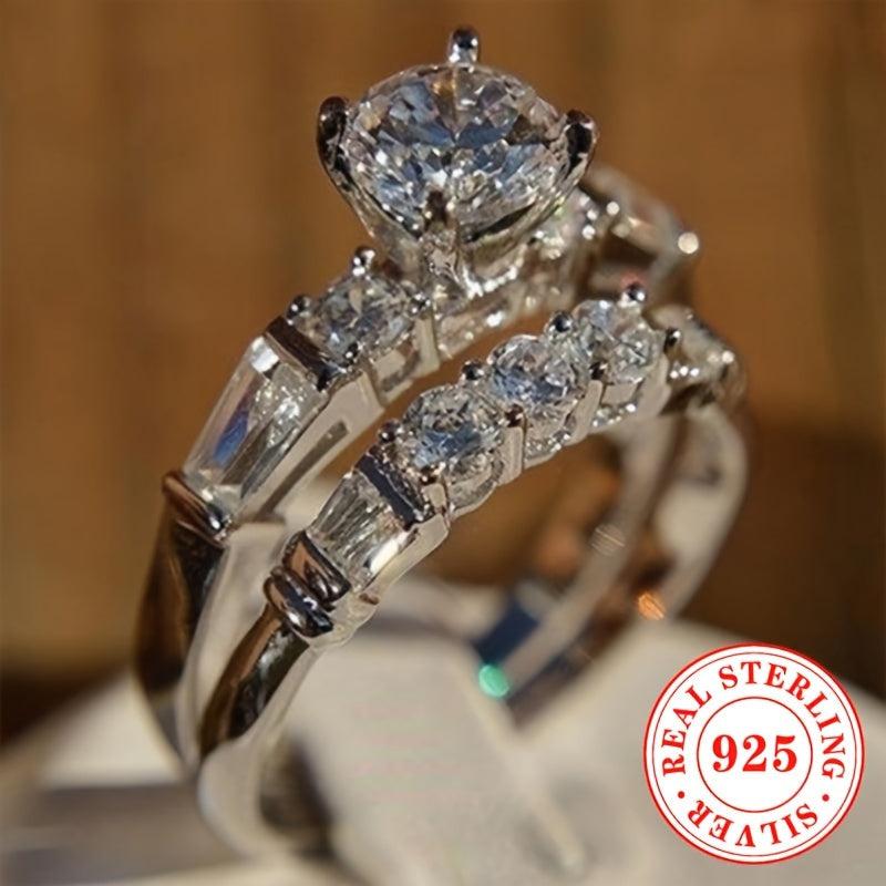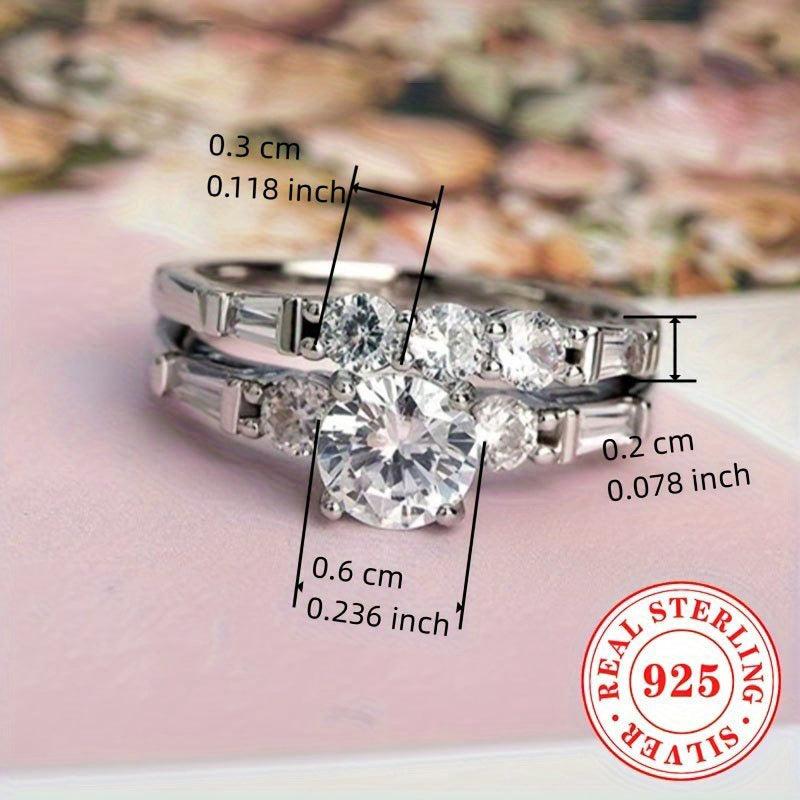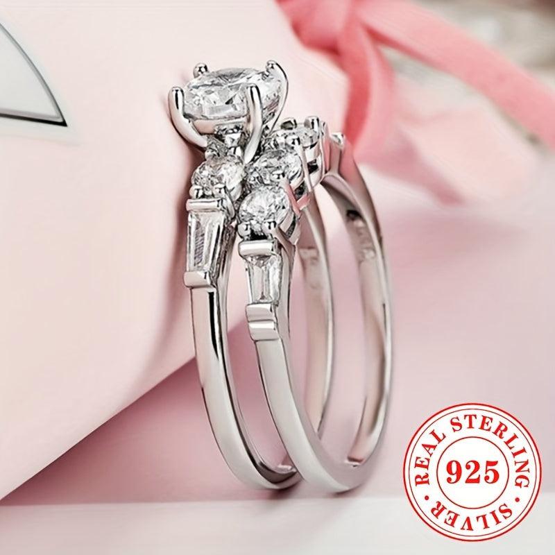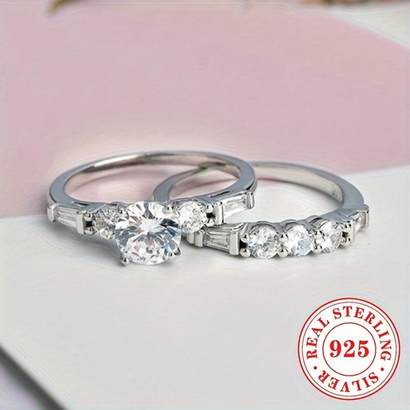 Elegant and dazzling set of two rings made of S925 sterling silver with synthetic zirconia stone, perfect for engagements, proposals, and weddings.