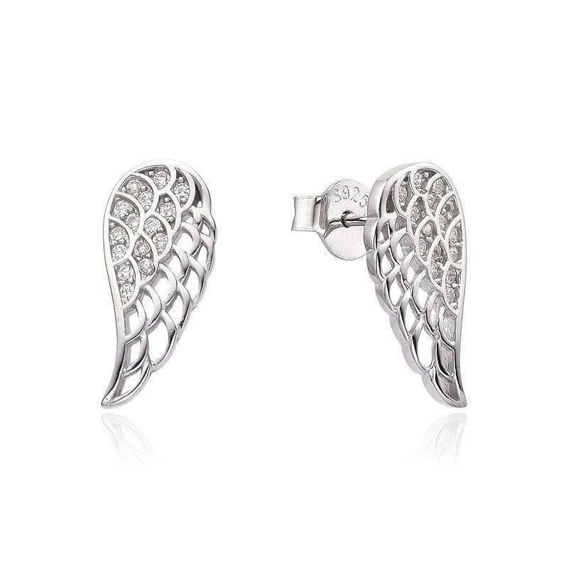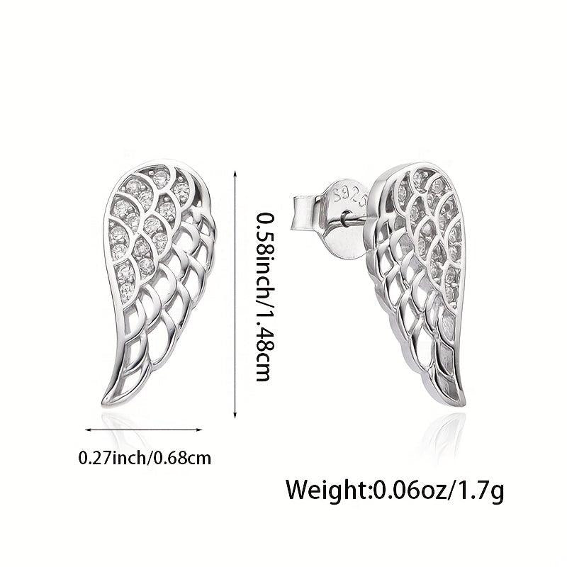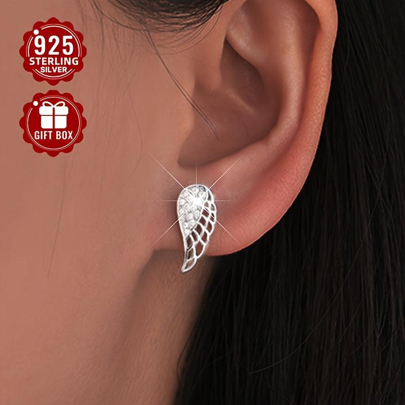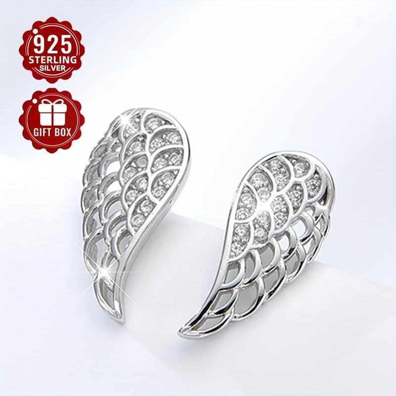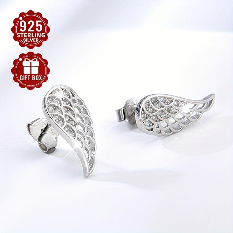 This set includes a pair of sterling silver stud earrings and a matching necklace with angel wing design and synthetic zirconia. Perfect for adding a touch of elegance to any outfit.