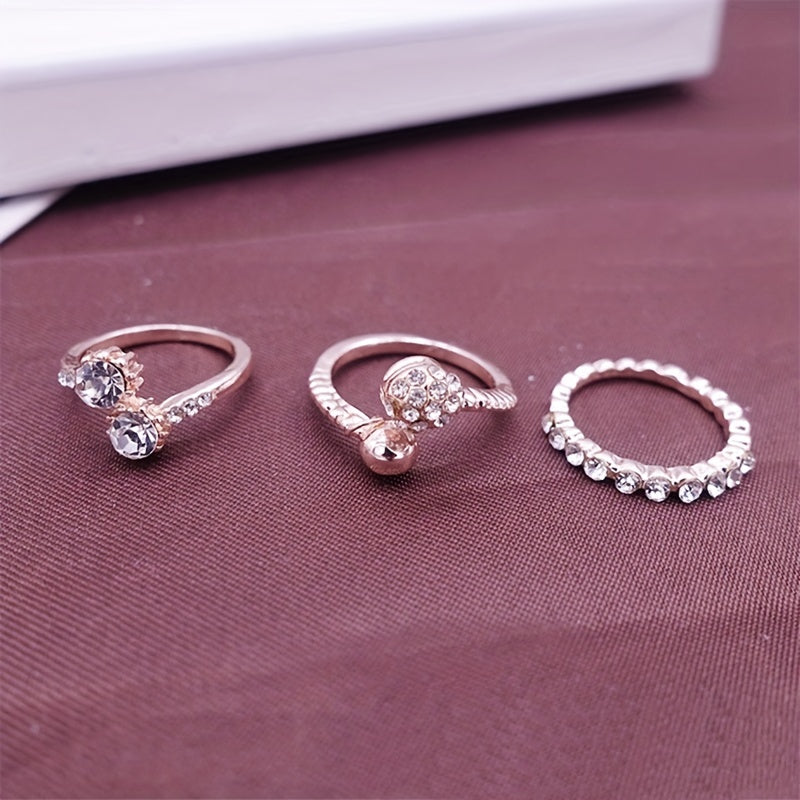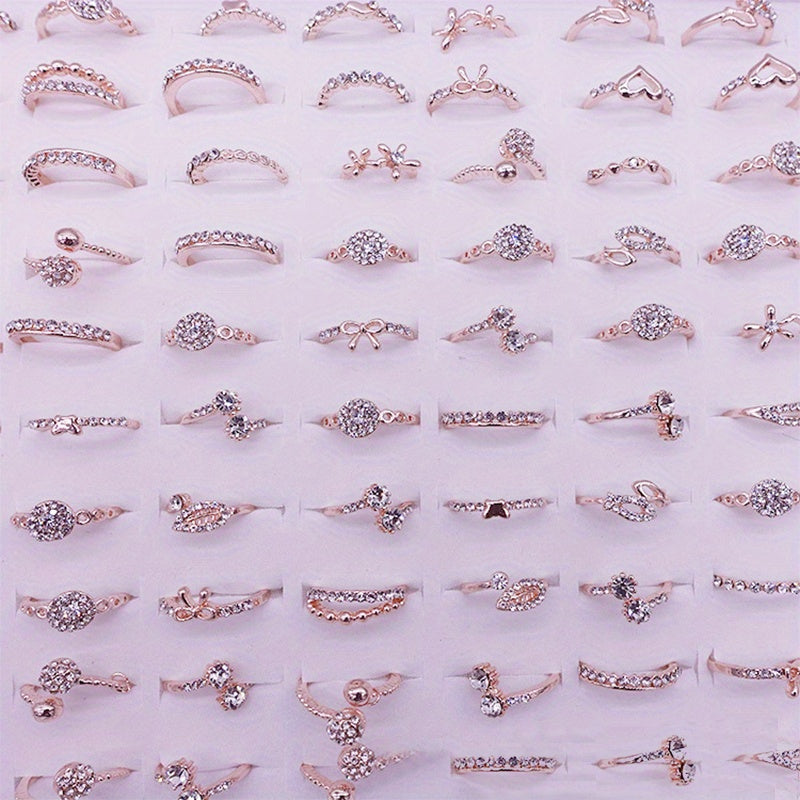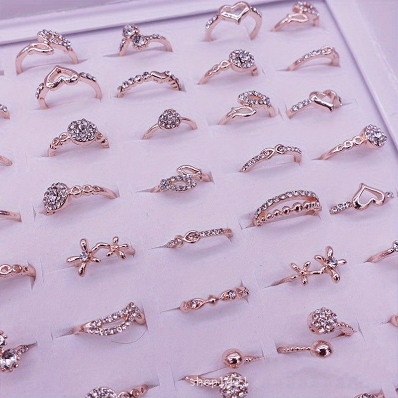 30pcs Rhinestone Inlaid 14k Plated Rings Mix & Match for Daily Outfits