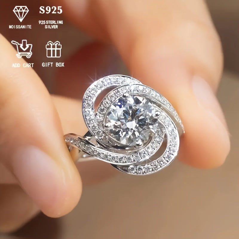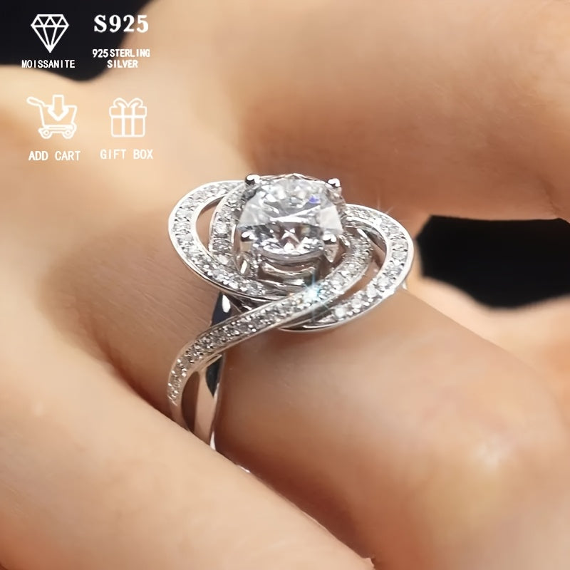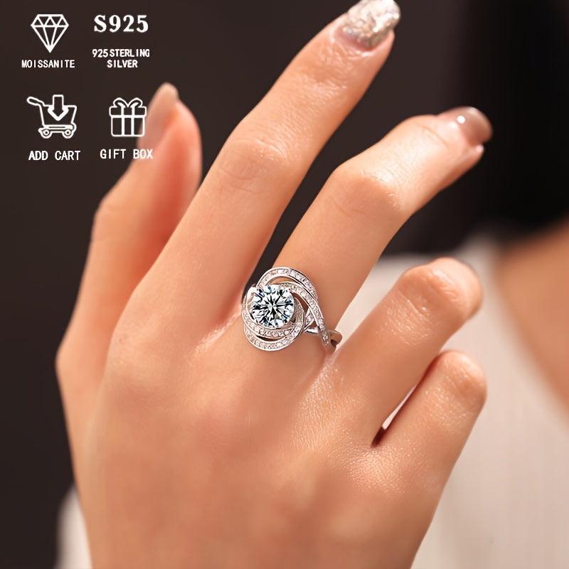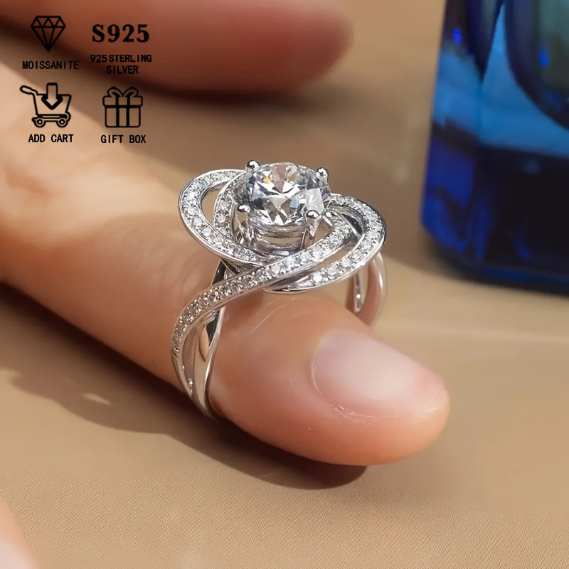 Elegant party style ring for women with low allergy s925 silver and 2ct moissanite. Perfect for any occasion.