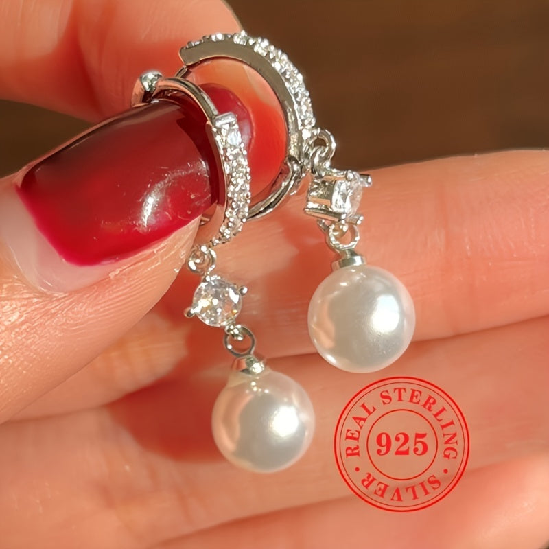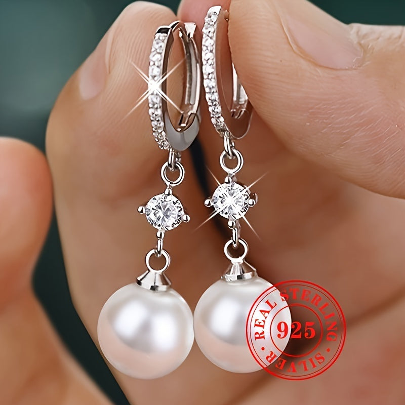 Chic and elegant jewelry set featuring a pure silvery ring, earrings, and pendant with imitation pearl. Perfect for daily casual wear.
