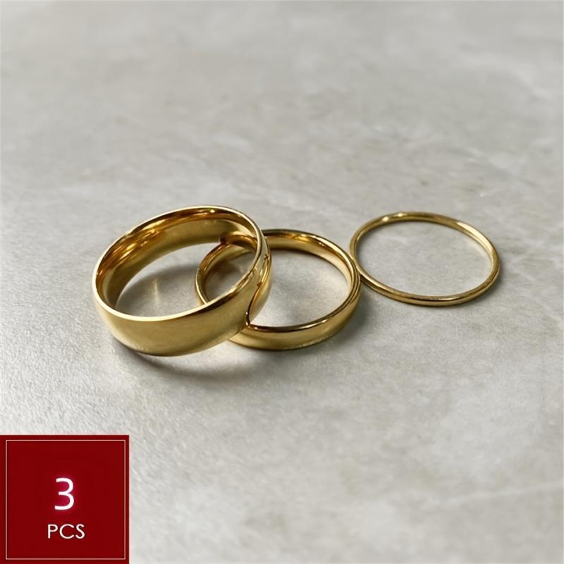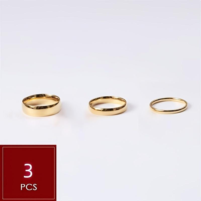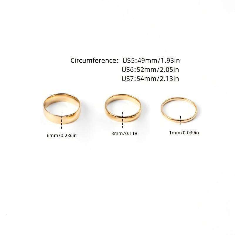 3pcs 14K Gold Plated Rings Set 1mm 3mm 6mm Band Unisex Daily Wear