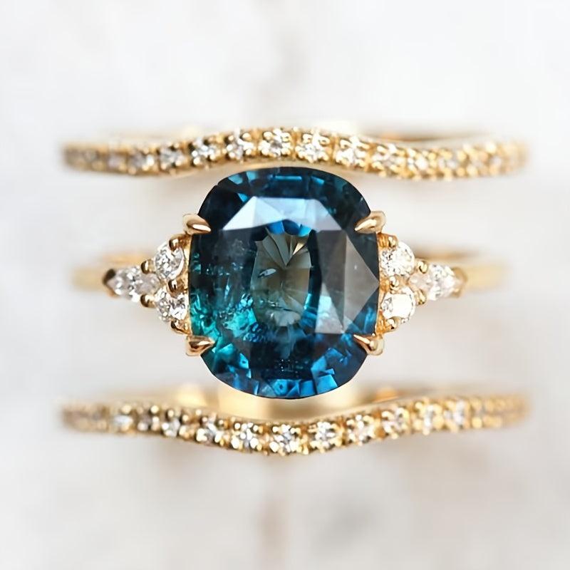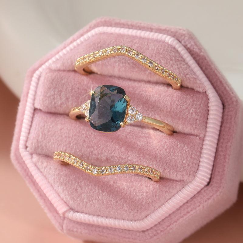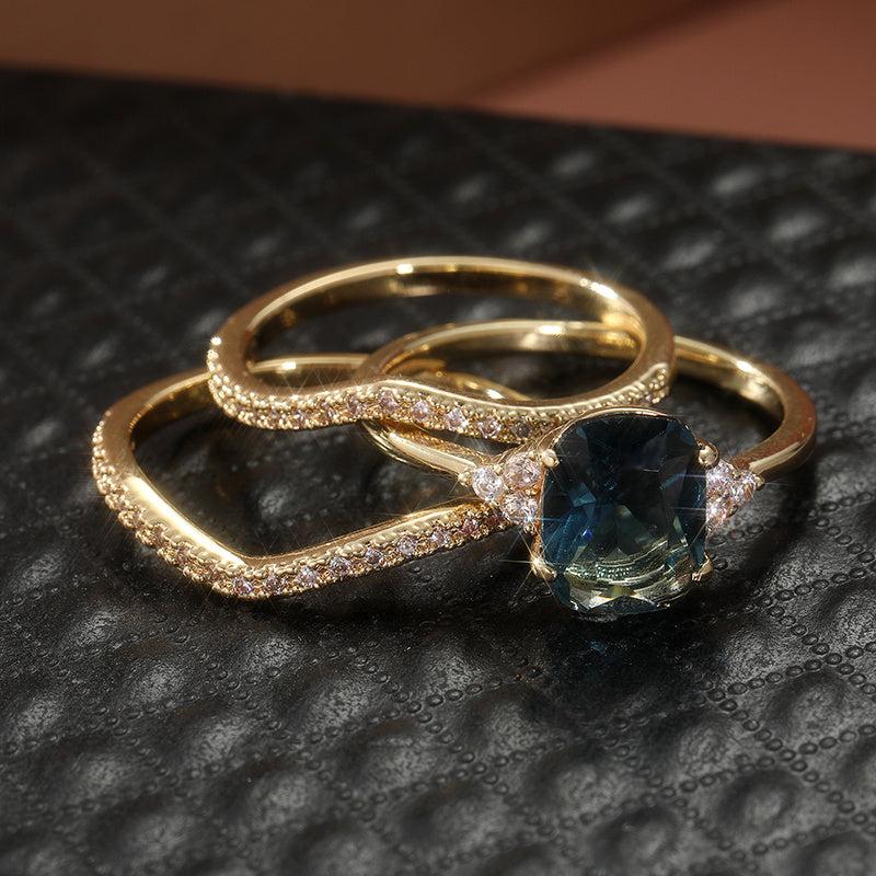 3pcs Boho Women'S Ring Set with Deep Sea Zirconia, Ideal Mother'S Gift