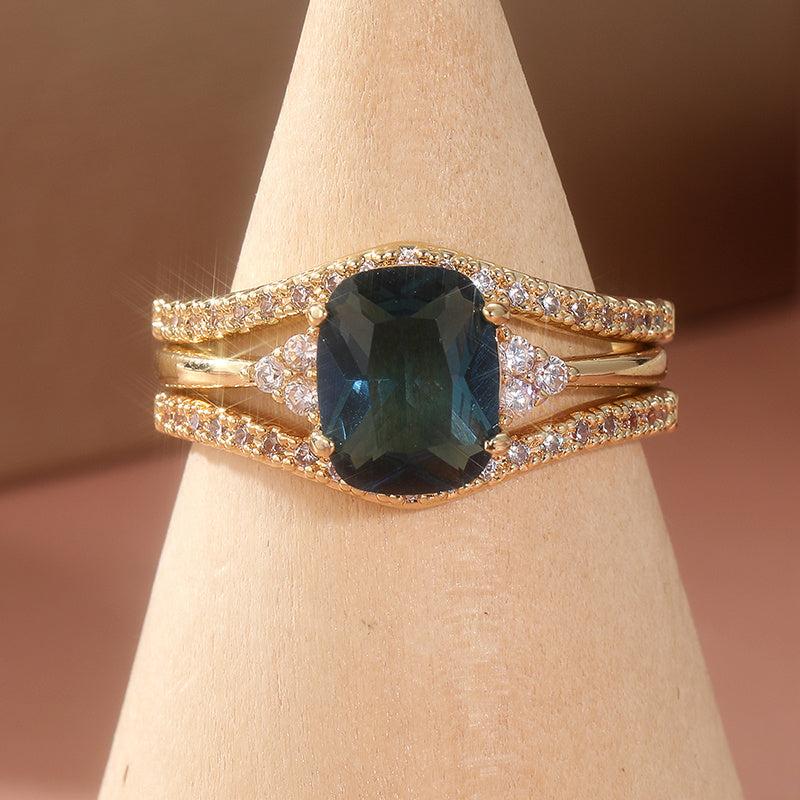 Add a touch of boho elegance to your look with this 3-piece ring set featuring deep sea synthetic zirconia. Perfect for daily wear or vacation occasions, this set makes an ideal gift for mothers.
