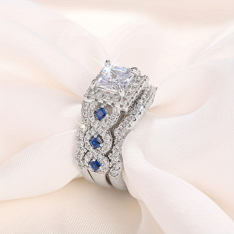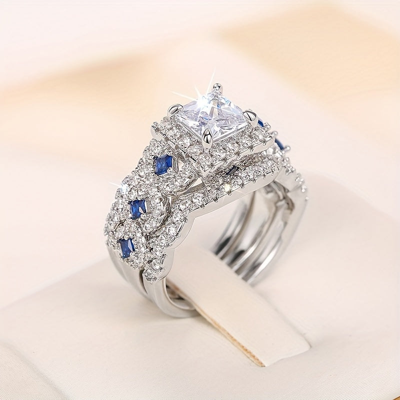 3pcs Women's Square Zirconia Engagement Wedding Ring Set