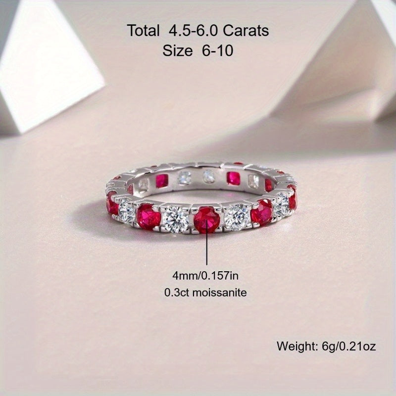 Stunning 925 sterling silver engagement ring featuring 4mm red and green D VVS1 moissanite stones. Perfect for women and men. Ideal for couples celebrating holidays or special occasions.