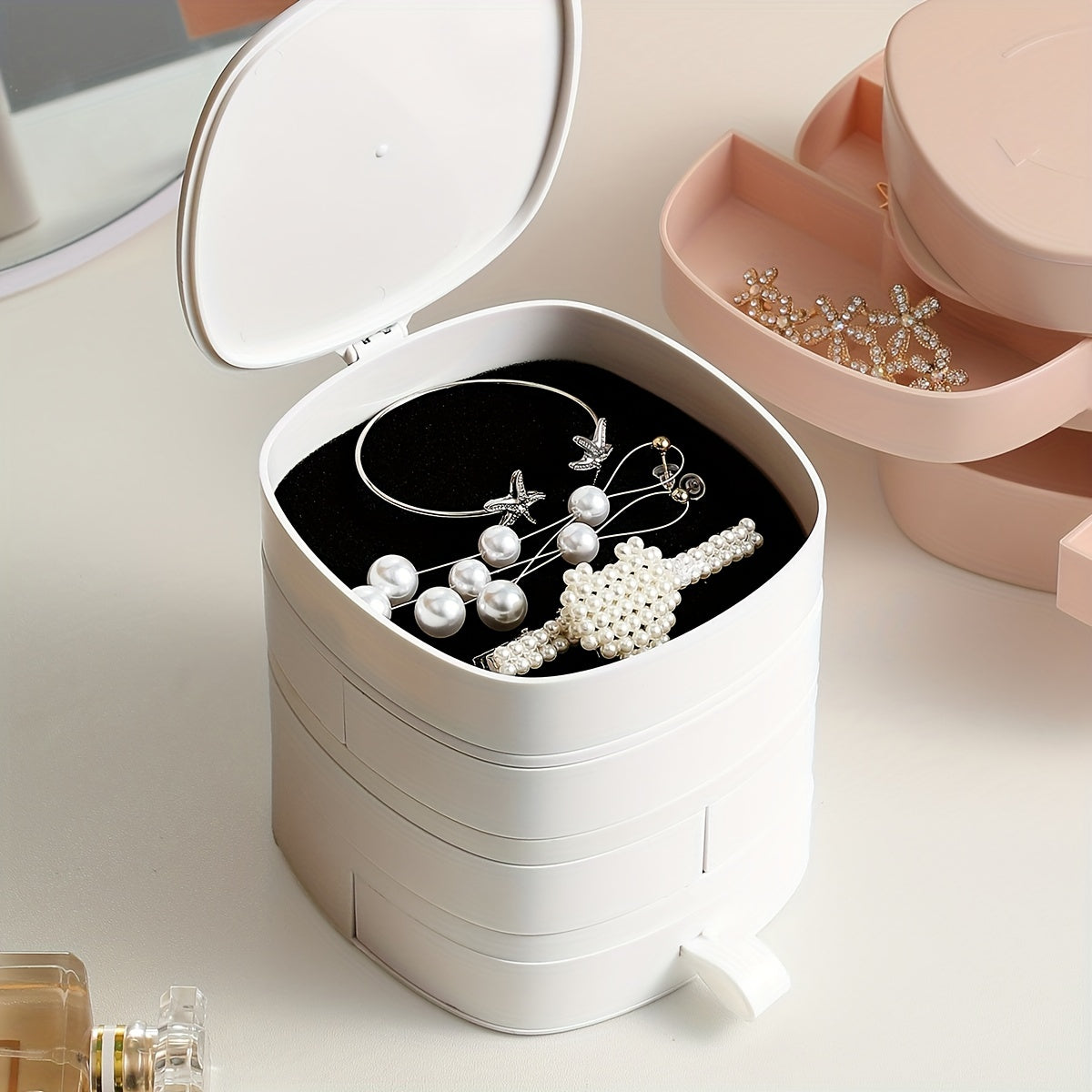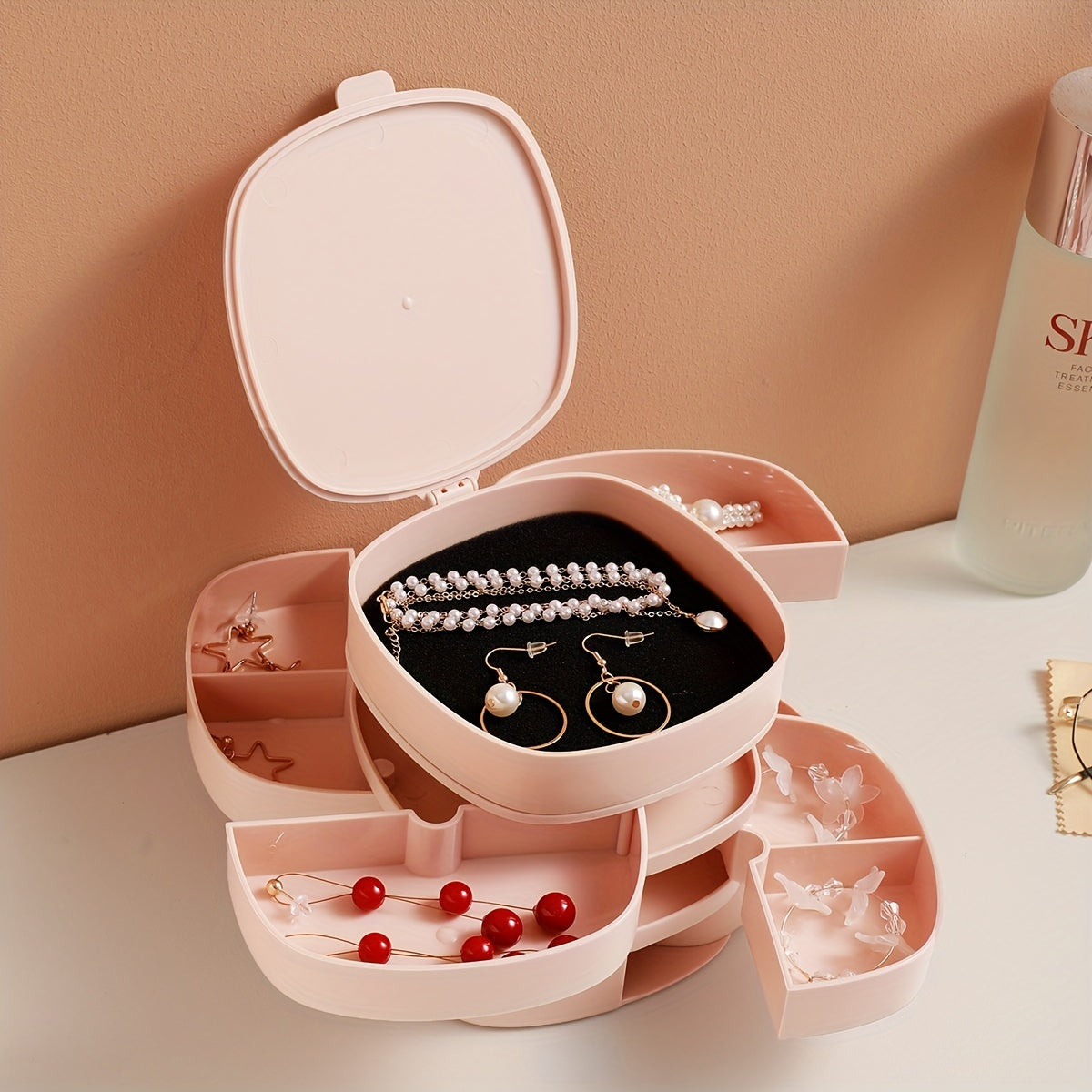 4 Layer Rotating Travel Jewelry Tray Case With Lid