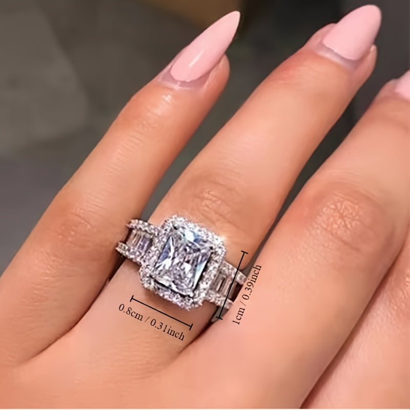This romantic engagement ring features a synthetic zirconia stone in a princess cut, set in a copper band. Perfect as a Valentine's gift or wedding jewelry, this piece is ideal for daily wear and special occasions.