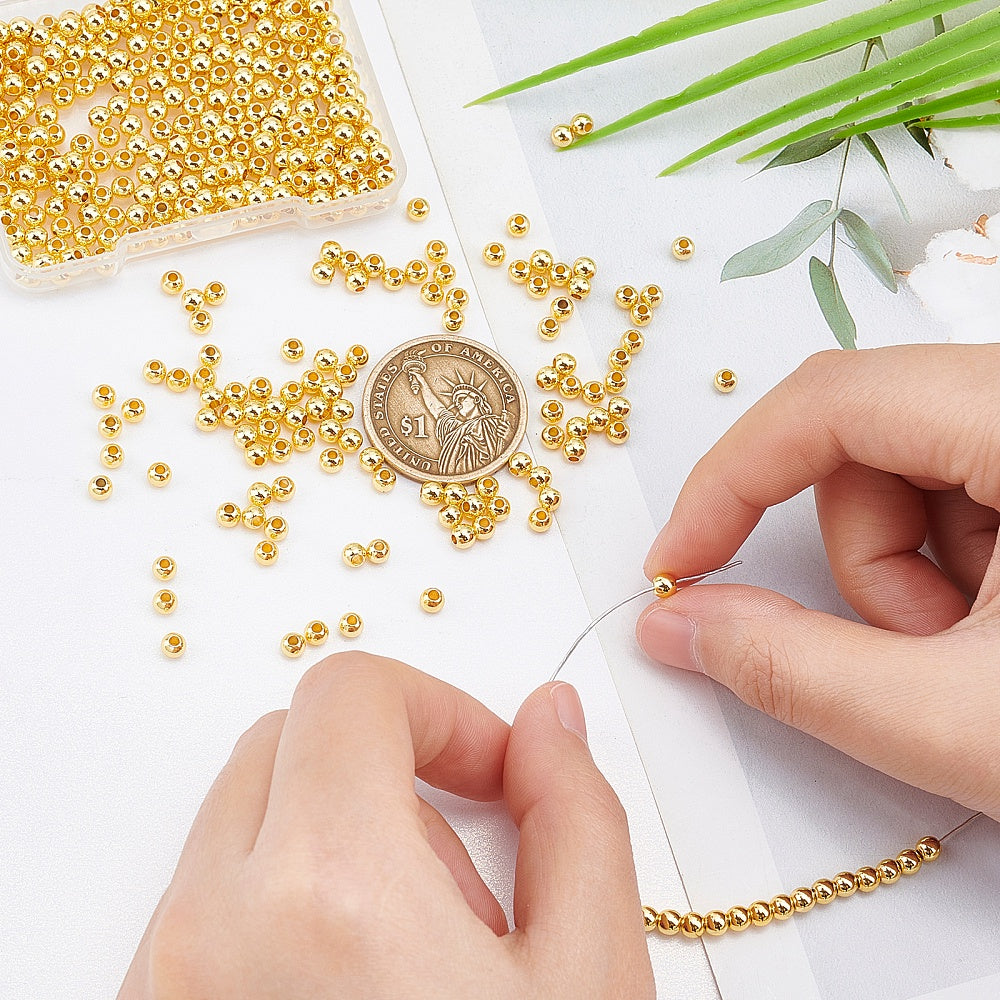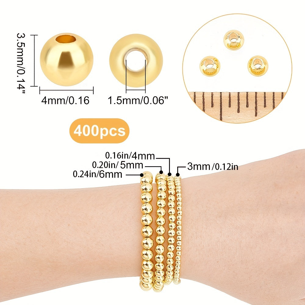 400pcs 4mm Smooth Golden Brass Beads for DIY Jewelry Making