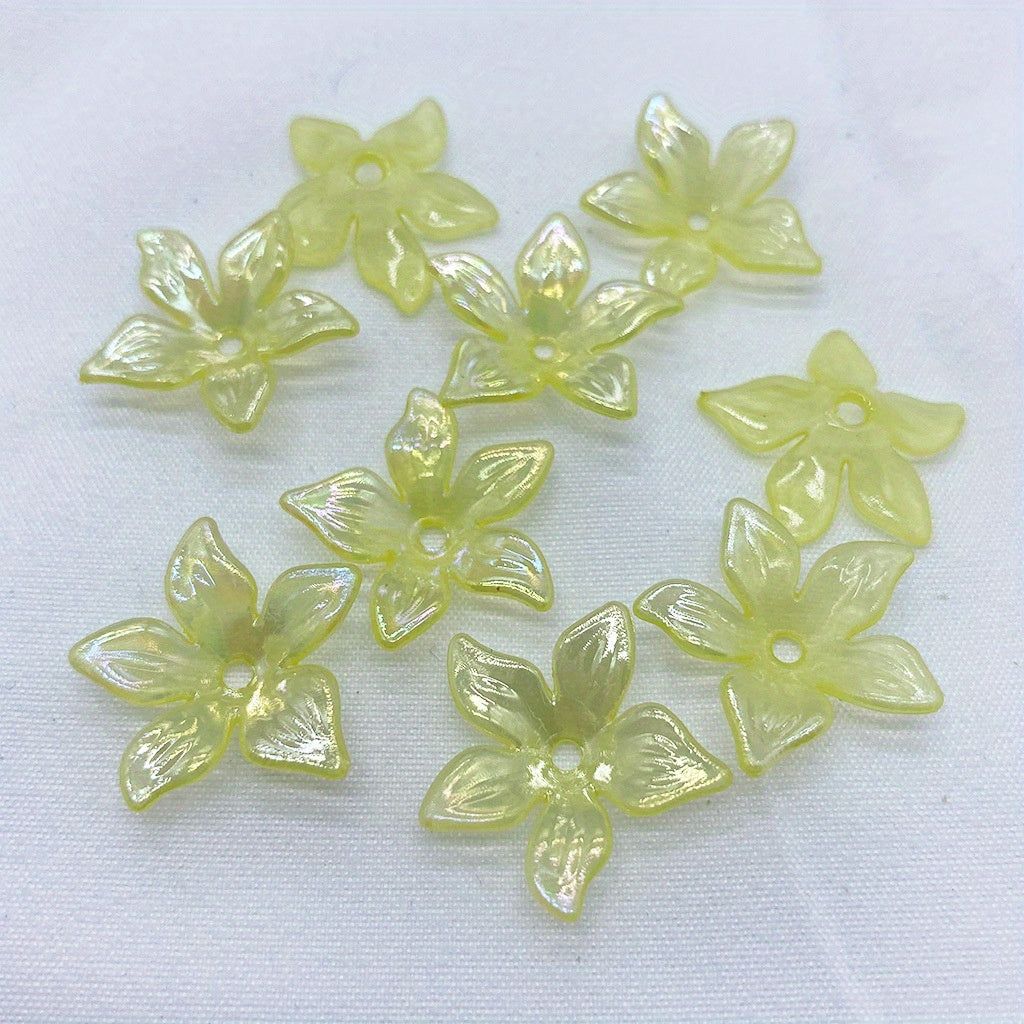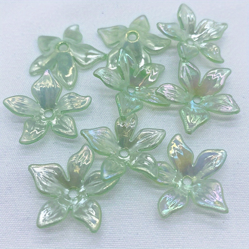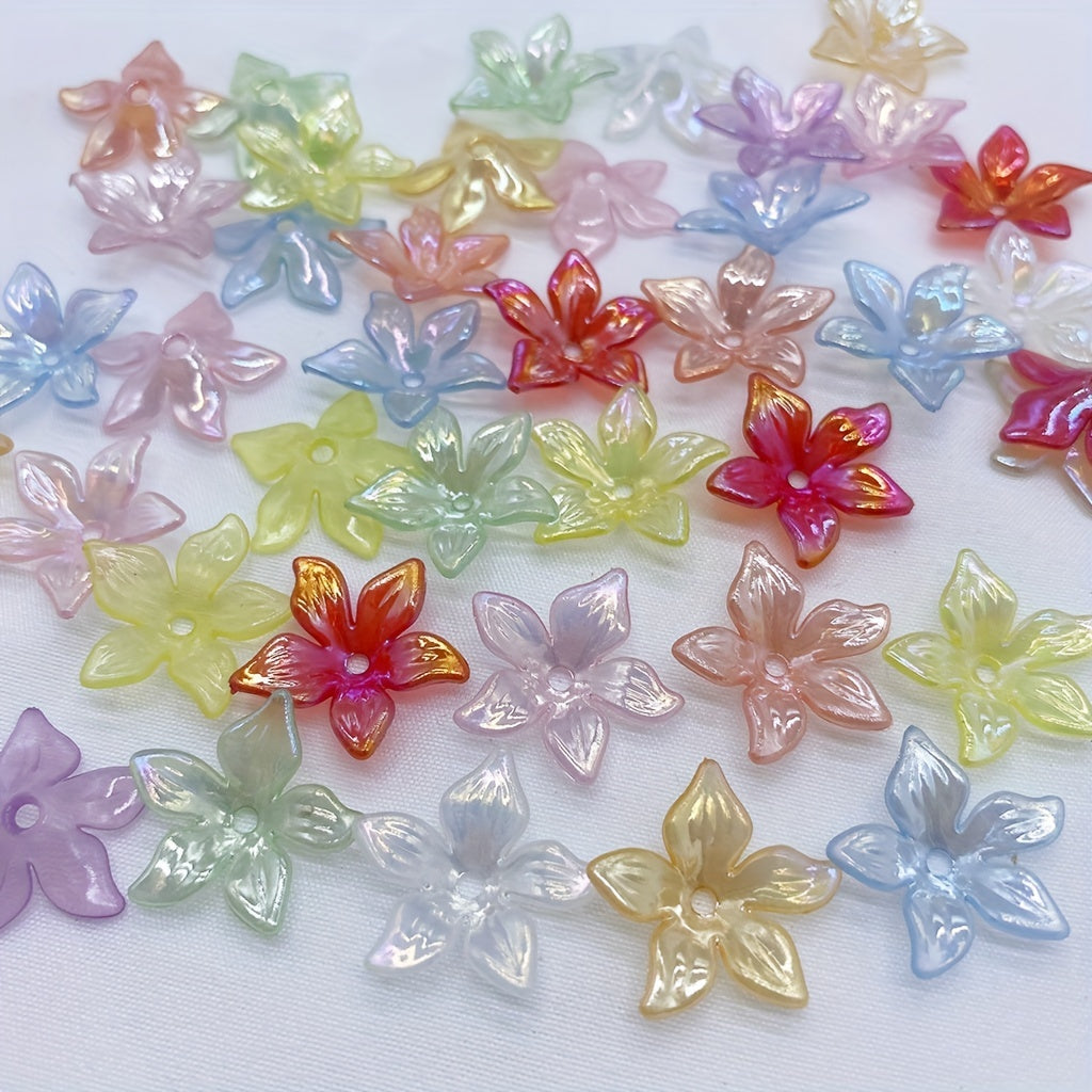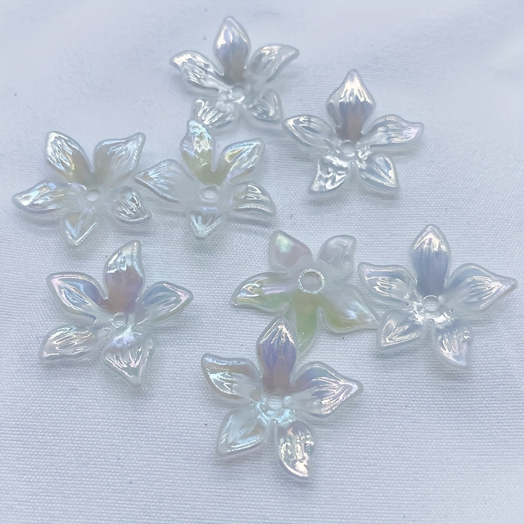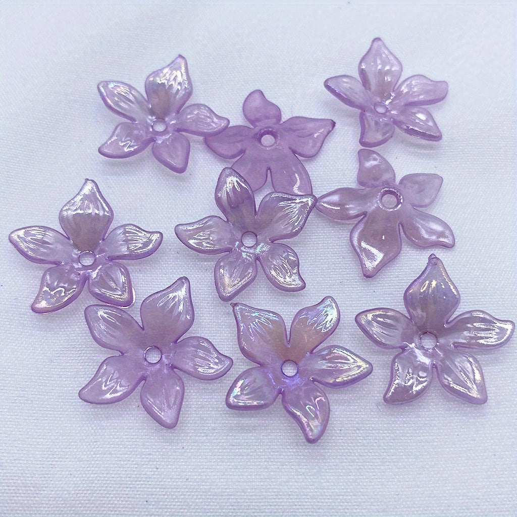 Enhance your bracelet or necklace creations with these 22mm acrylic AB five petal flower charms. Perfect for DIY jewelry making projects.