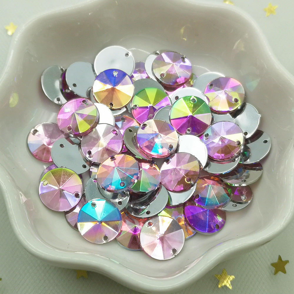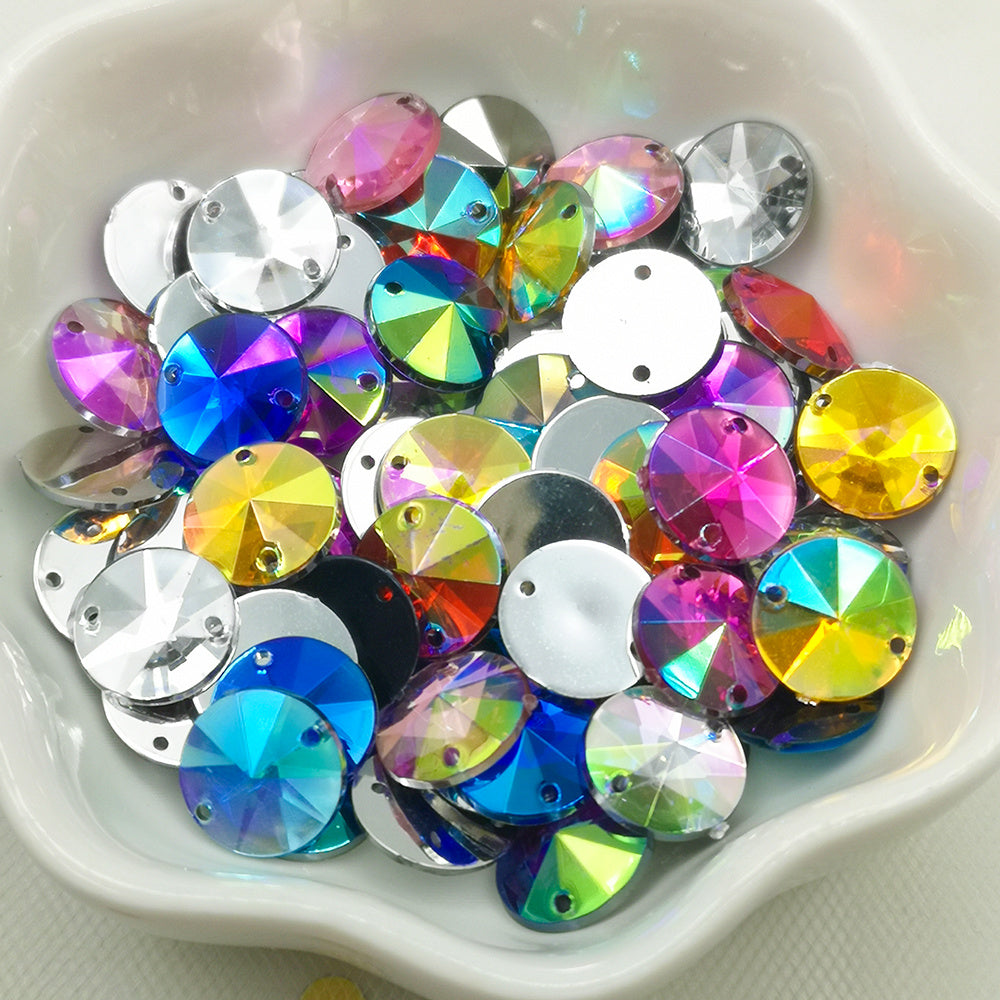 40pcs Sewing Mix Crystal AB Rhinestone Flat Back Round Acrylic Strass Applique