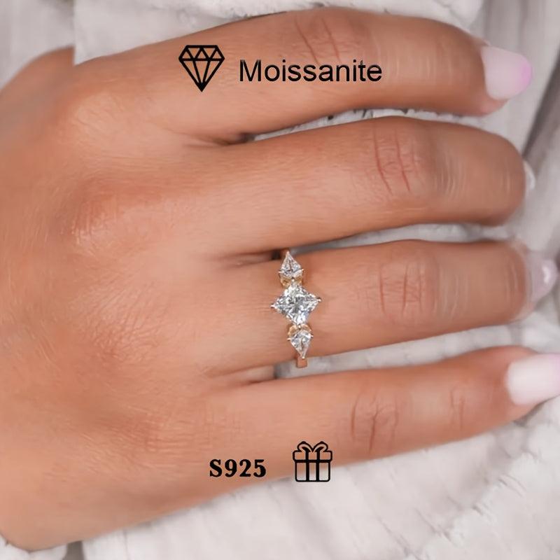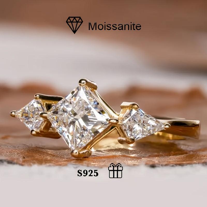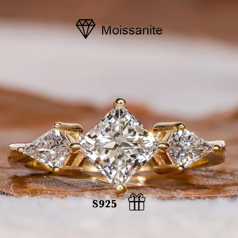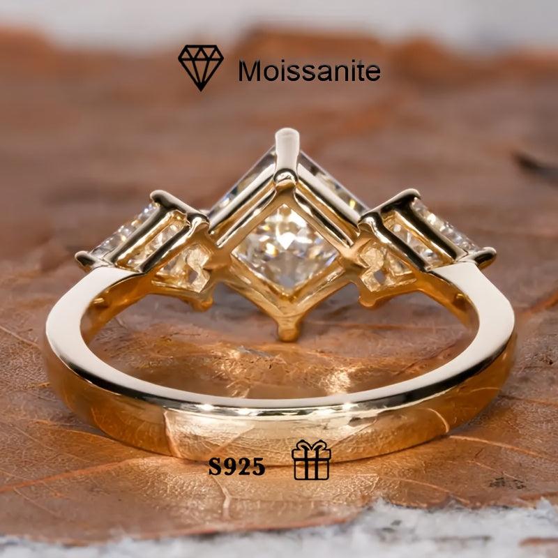 This stunning 4g s925 silver ring features a 1ct princess square moissanite center stone with three stone inlays, perfect for weddings or as a gift for your wife. The low allergy silver ensures comfortable wear.