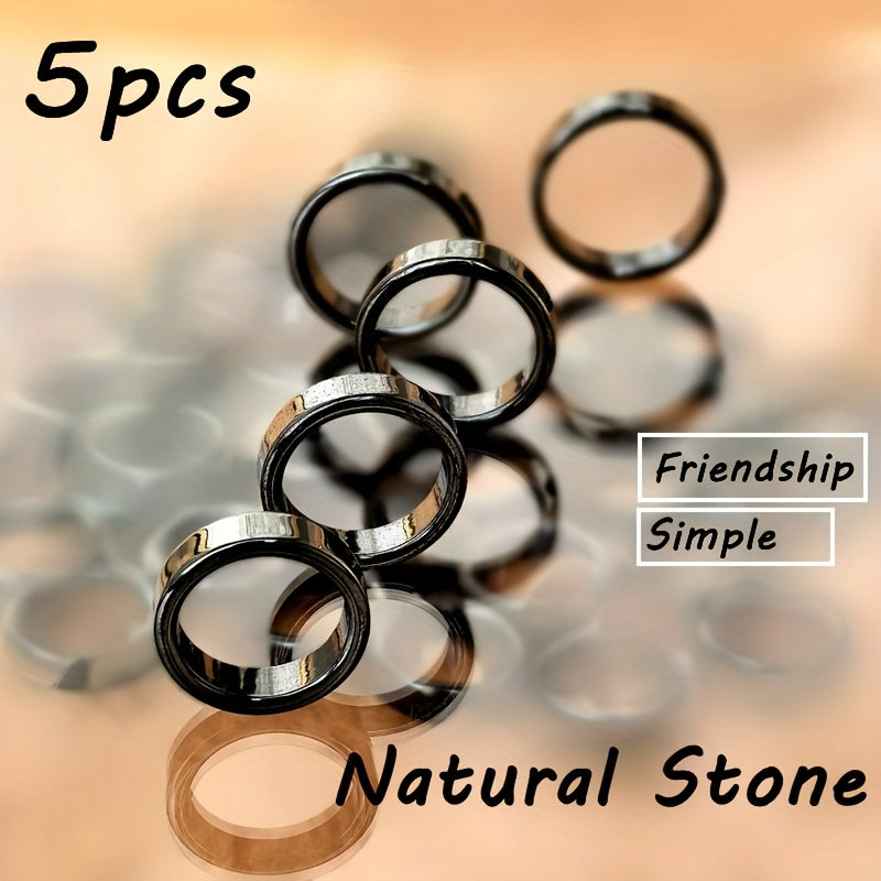 5 Pack Thera Flat Ring Set Men's Friendship Stone Rings Uncoated