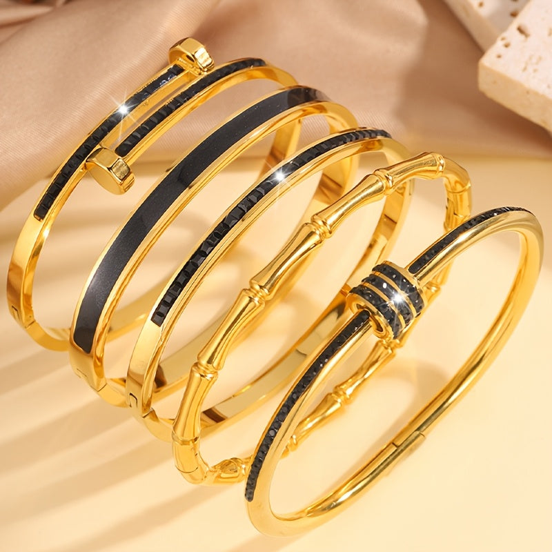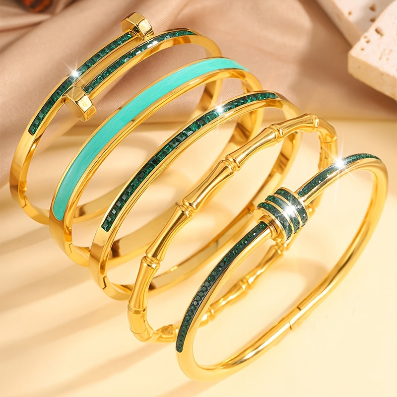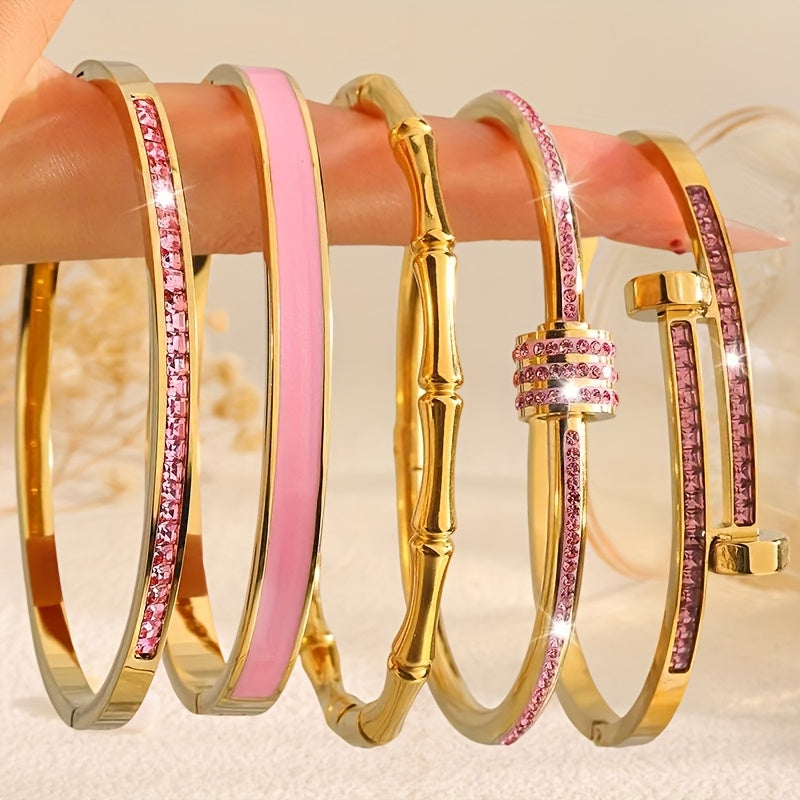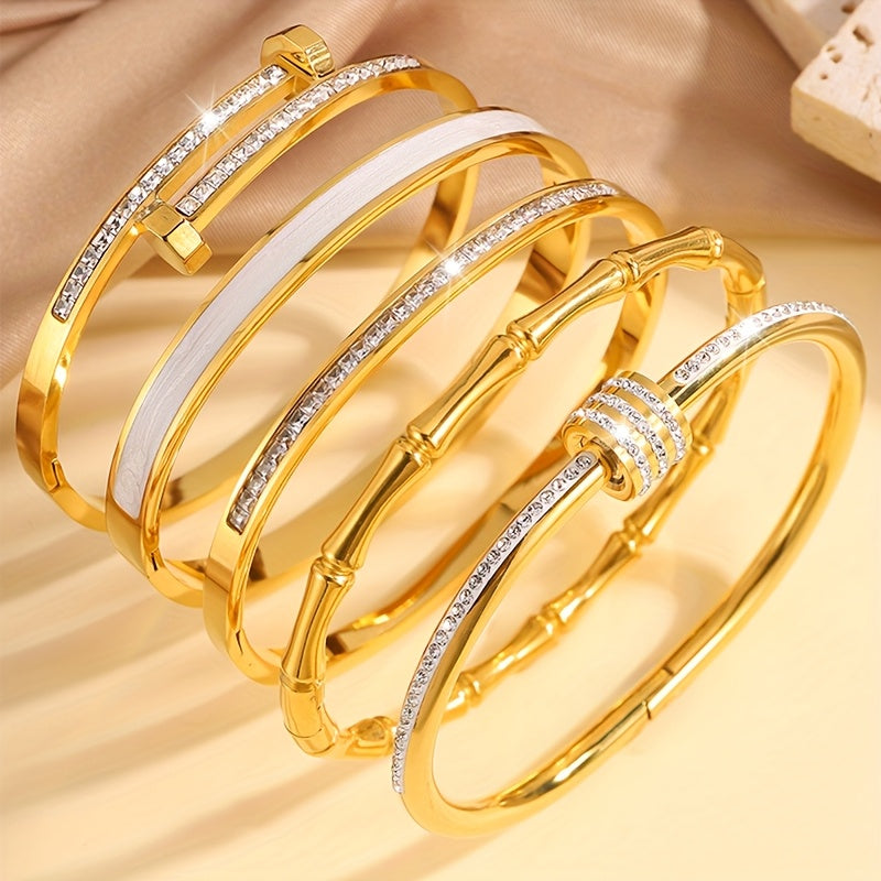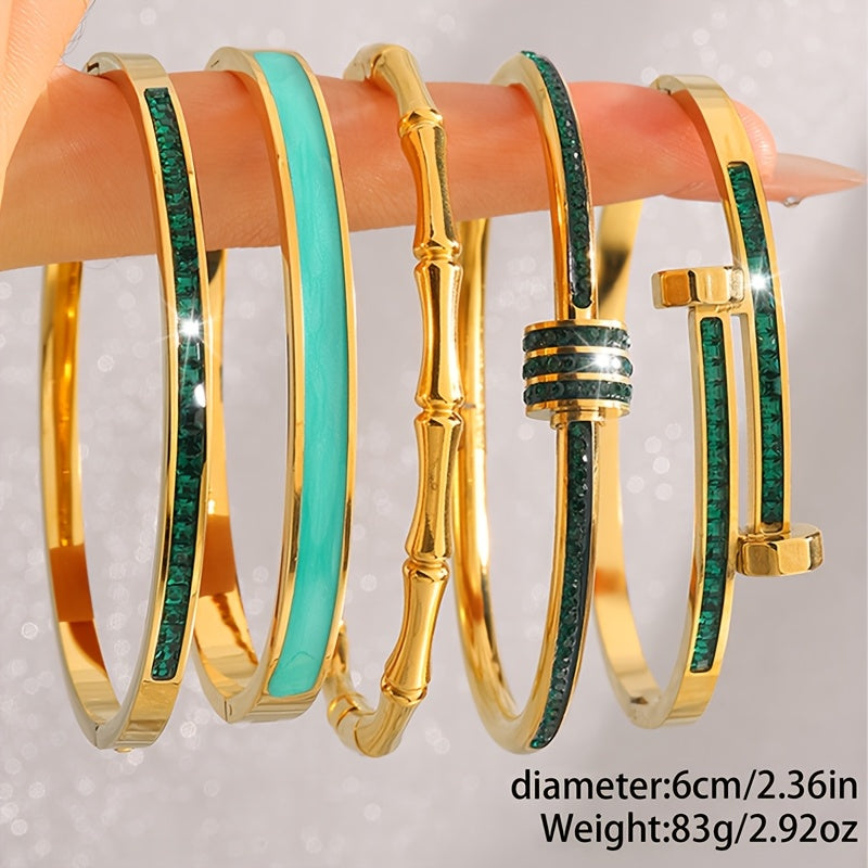 5pcs Stainless Steel Bracelet Set with Rhinestone Accents Boho Style