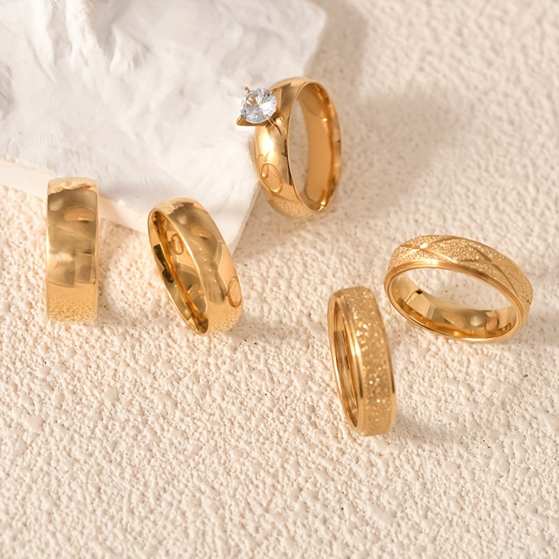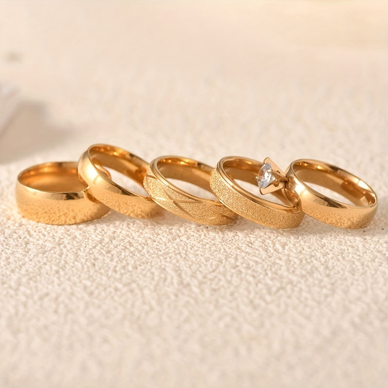 Elevate your style with this set of 5 stainless steel rings designed for everyday wear. Inspired by Western styles, these rings are perfect for any occasion.