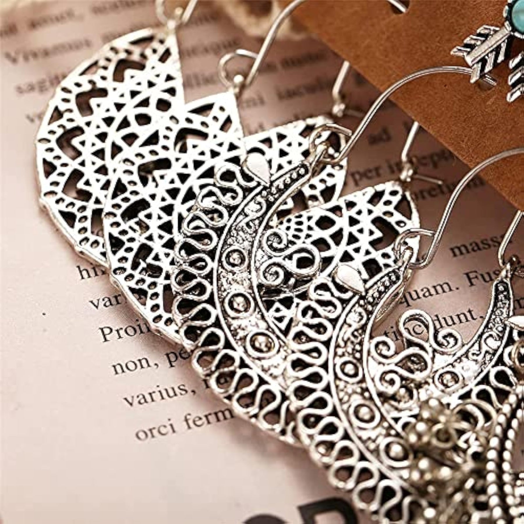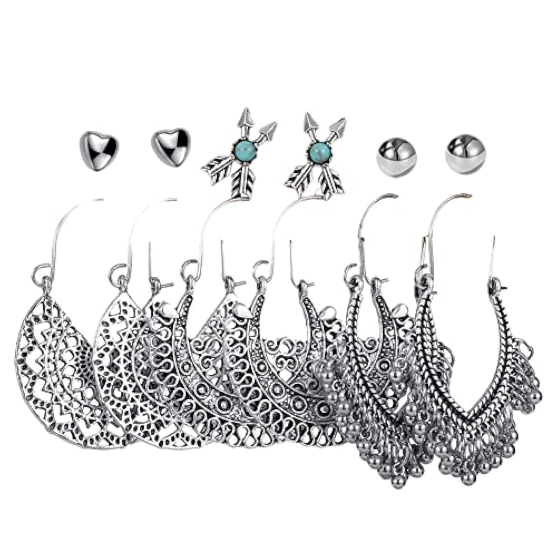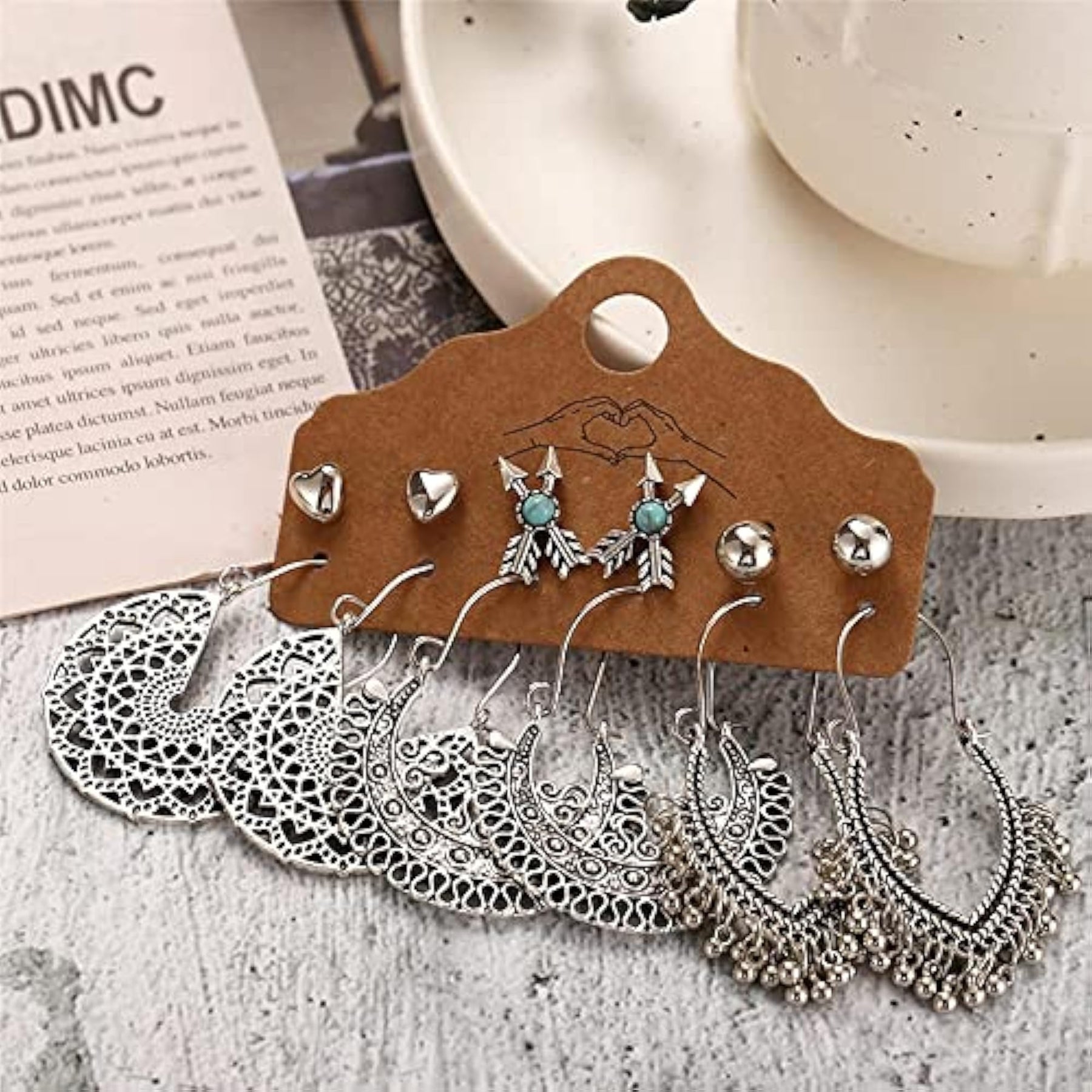 Elevate your style with this set of 6 pairs of trendy metal earrings. Perfect for everyday wear or special occasions.