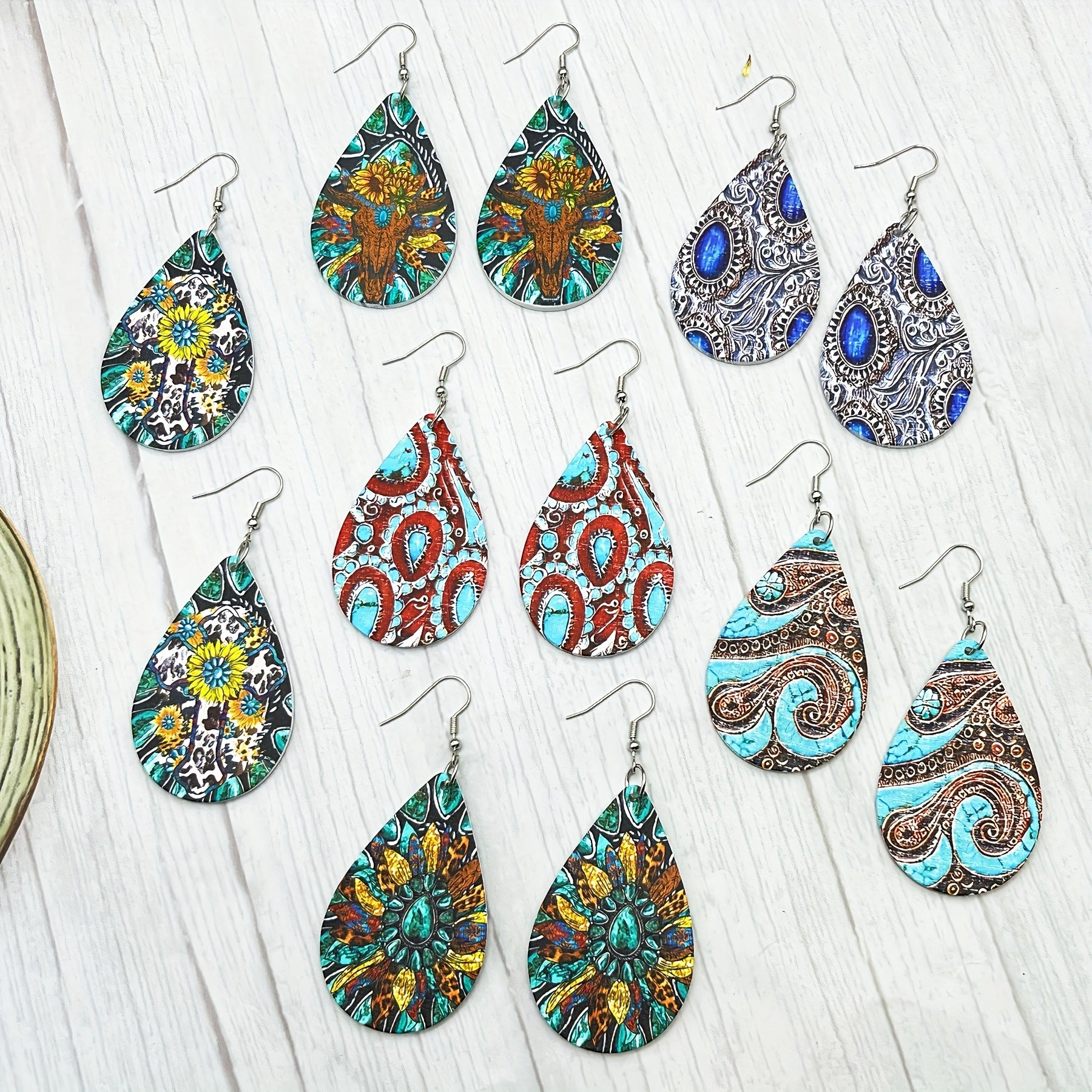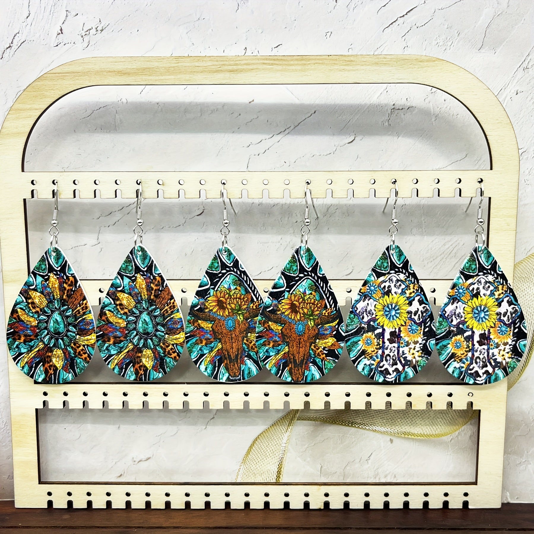 • 6 pairs of wooden teardrop earrings