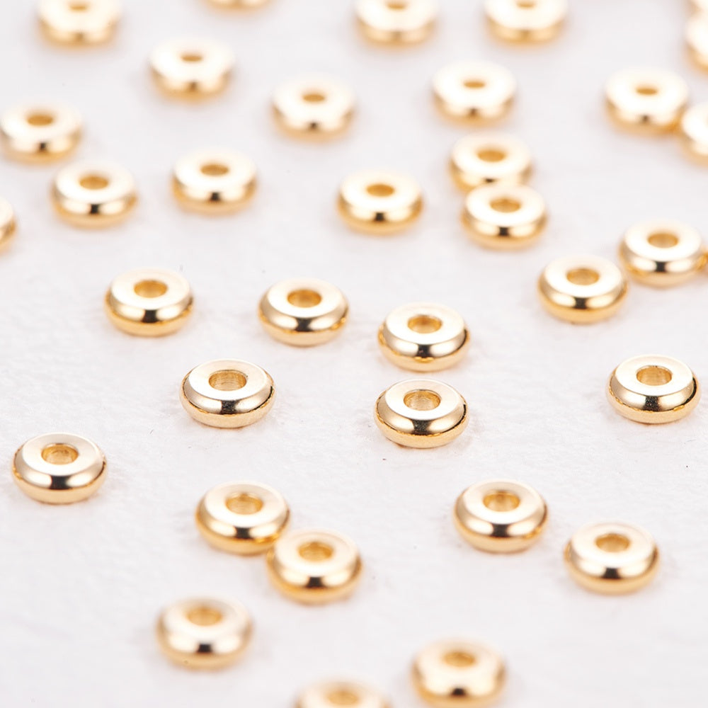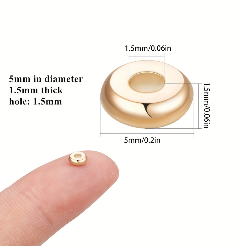 Get this set of 60 brass beads with real 18K golden plating to create stunning bracelets and necklaces. These donut-shaped beads are durable and long-lasting, perfect for your jewelry projects.