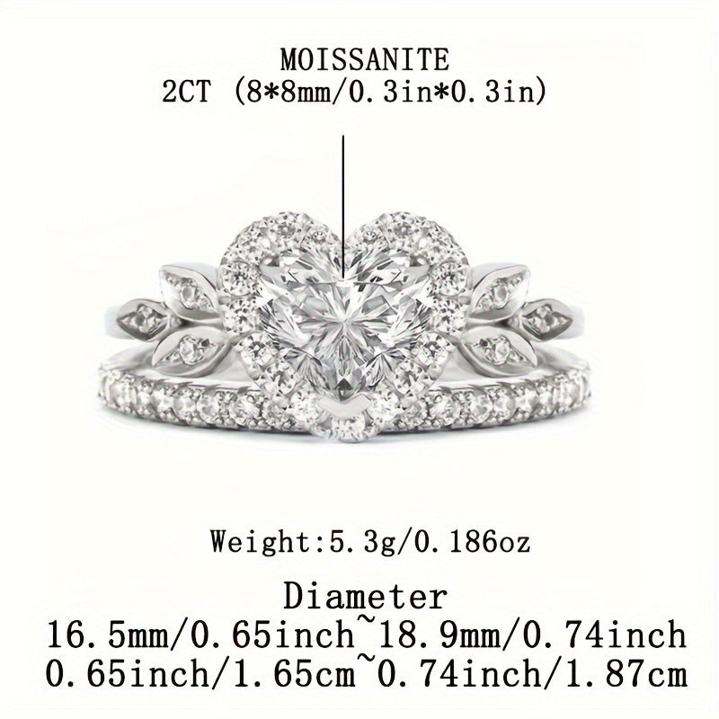 6g S925 Sterling Silver 2ct Moissanite Heart Shaped Ring