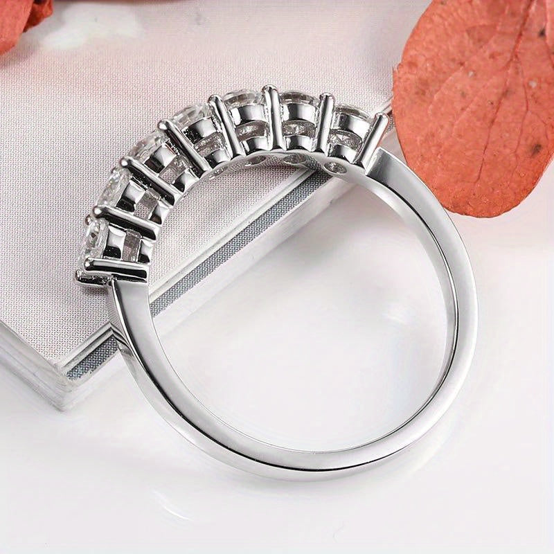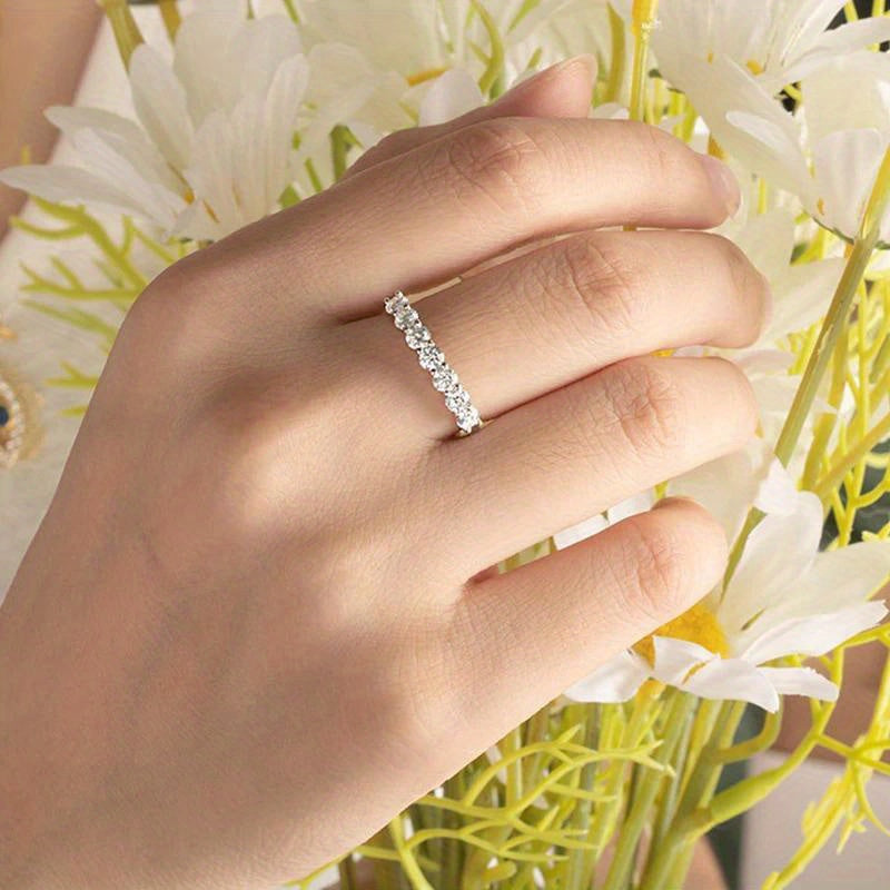 This stunning 7-stone Moissanite promise ring features 0.7ct total weight set in 925 sterling silver. A sparkling and elegant choice for her special occasion.