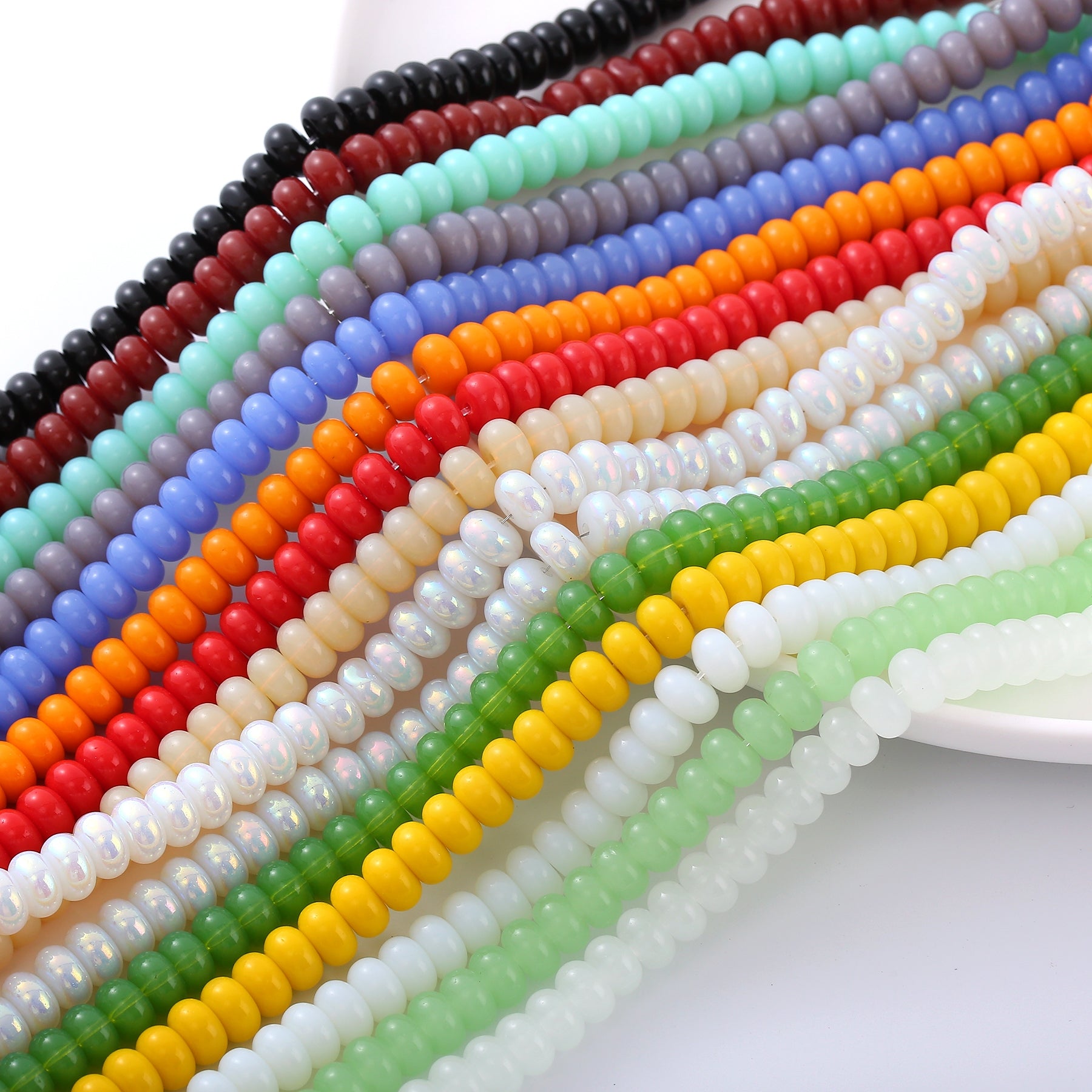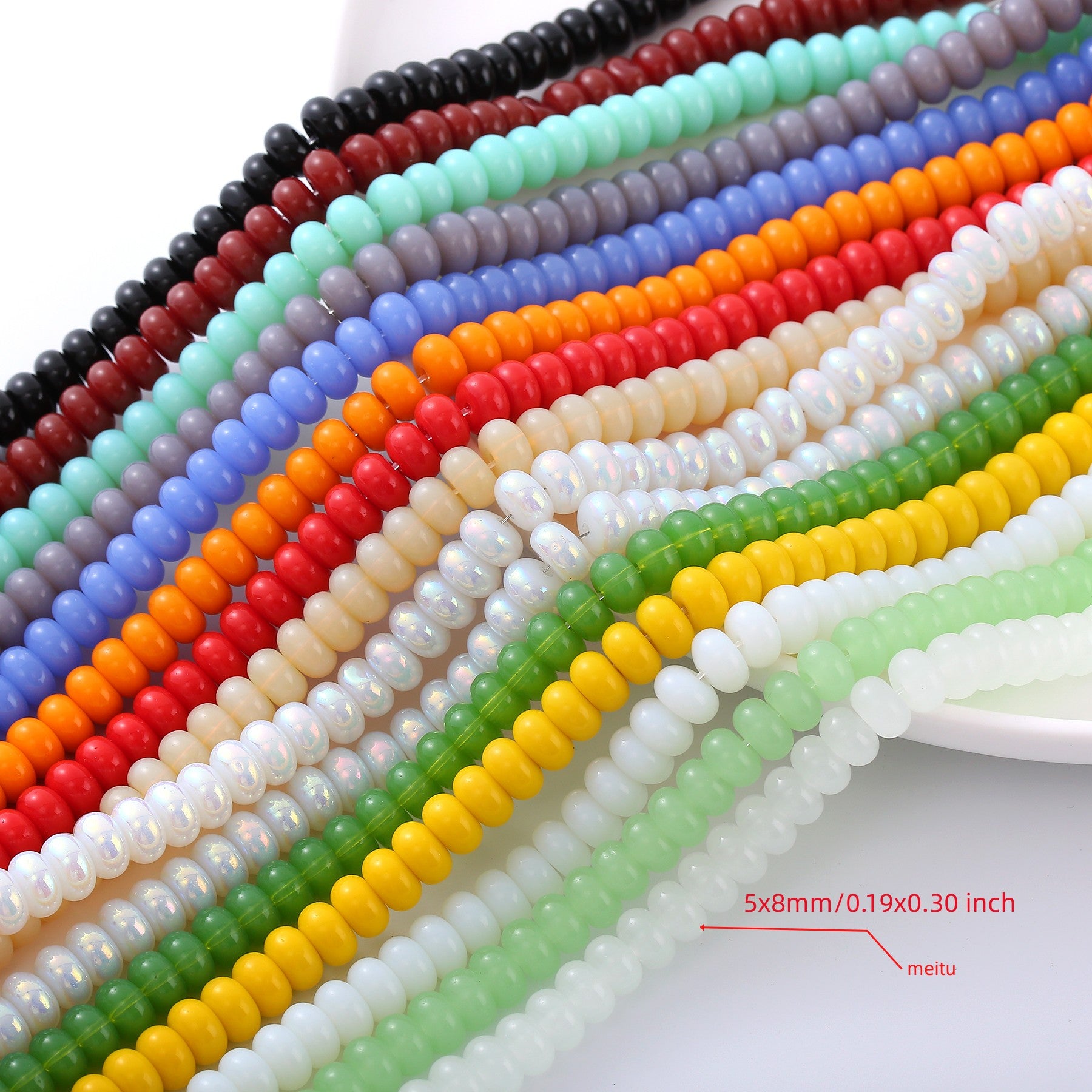 76pcs Wheel Shape Beads 5x8mm Hand String Glass Beads Smooth Flat Round Beads